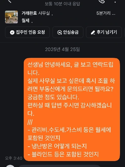 첫 번째 공간은 감도보다는 일단 공간 형성에 의의를 두자는 목표였다. 그러나 인테리어가 필요 없는 곳은 권리금이 붙었고, 거리나 환경이 마음에 드는 곳이면 (당연하게도) 예산 초과였다. 그렇게 시간을 보내다, 정말 우연히 당근을 보는데 나의 눈을 사로잡는 글을 발견했다. 하트도 이미 많이 찍혀 있어서 마음이 조급해졌다. 나에게는 글 쓴 분이 올린 사진이 너무 매력적이었다. 개인 작업실과 소규모 모임 용도로 사용했던 공간이고 개인 사정으로 나가게 되셔서 다음 세입자를 직접 구한다고 하셨다. 찜찜하지 않았고, 예산 조건도 맞았다.