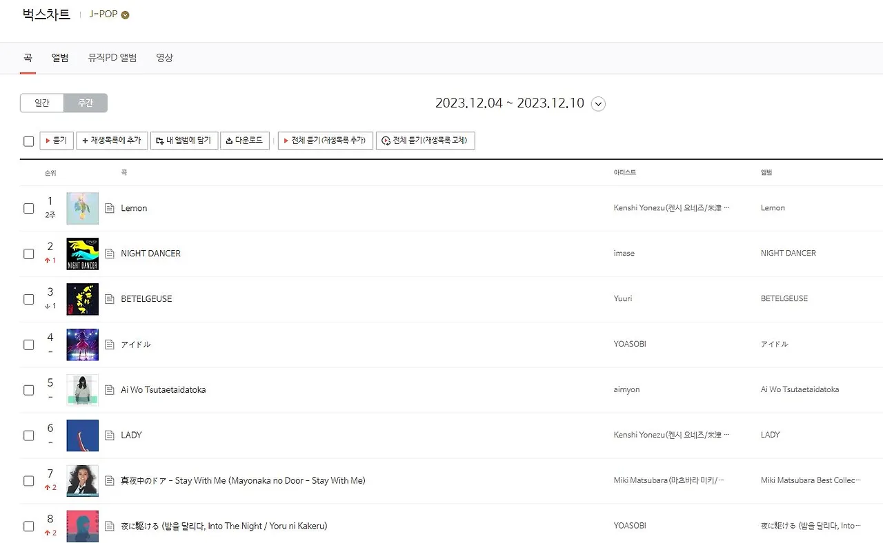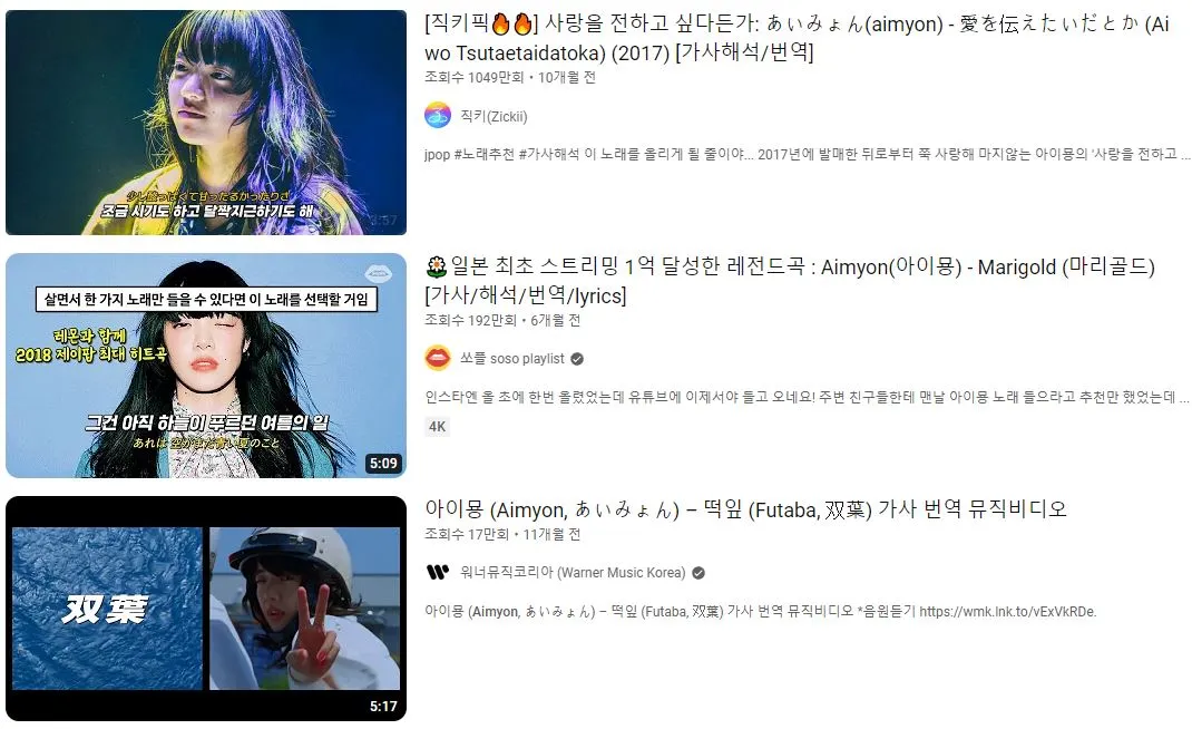 일본에서 K-pop의 인기가 높다는 사실은 들었지만 한국도 심상치 않다. 어느 순간 SNS를 중심으로 J-pop이 많이 보이고, aimyon, imase, YOASOBI, Yonez Kenshi 등의 음악은 이제 국내 차트에도 올라올 만큼 메인스트림이 되었다. imase와 YOASOBI는 내한공연을 오기도 했다.
