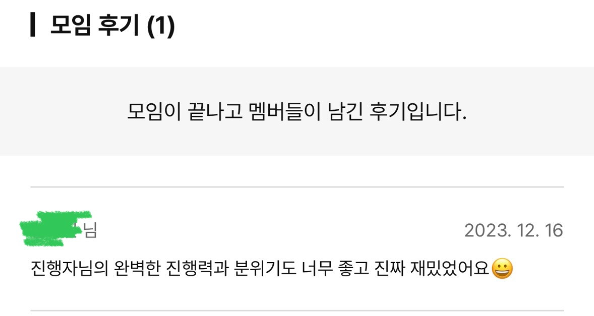 다행히 함께 진행했던 '내 인생의 주제가 찾기' 모임은 순항했다. 번개도 2번이나 하고, 모임원분들과 친목도 돈독해졌다. '놀러오기'로 타 모임에서 오신 분들도 우리 모임의 분위기가 너무 좋다고 해서 뿌듯했다. 내가 기획했지만 처음 진행하다 보니 회차별 상세 활동들은 또 손을 봐야 해서 준비시간이 더 오래 걸리고, 고민도 되는 부분이 있었지만 즐겁게 준비했다.