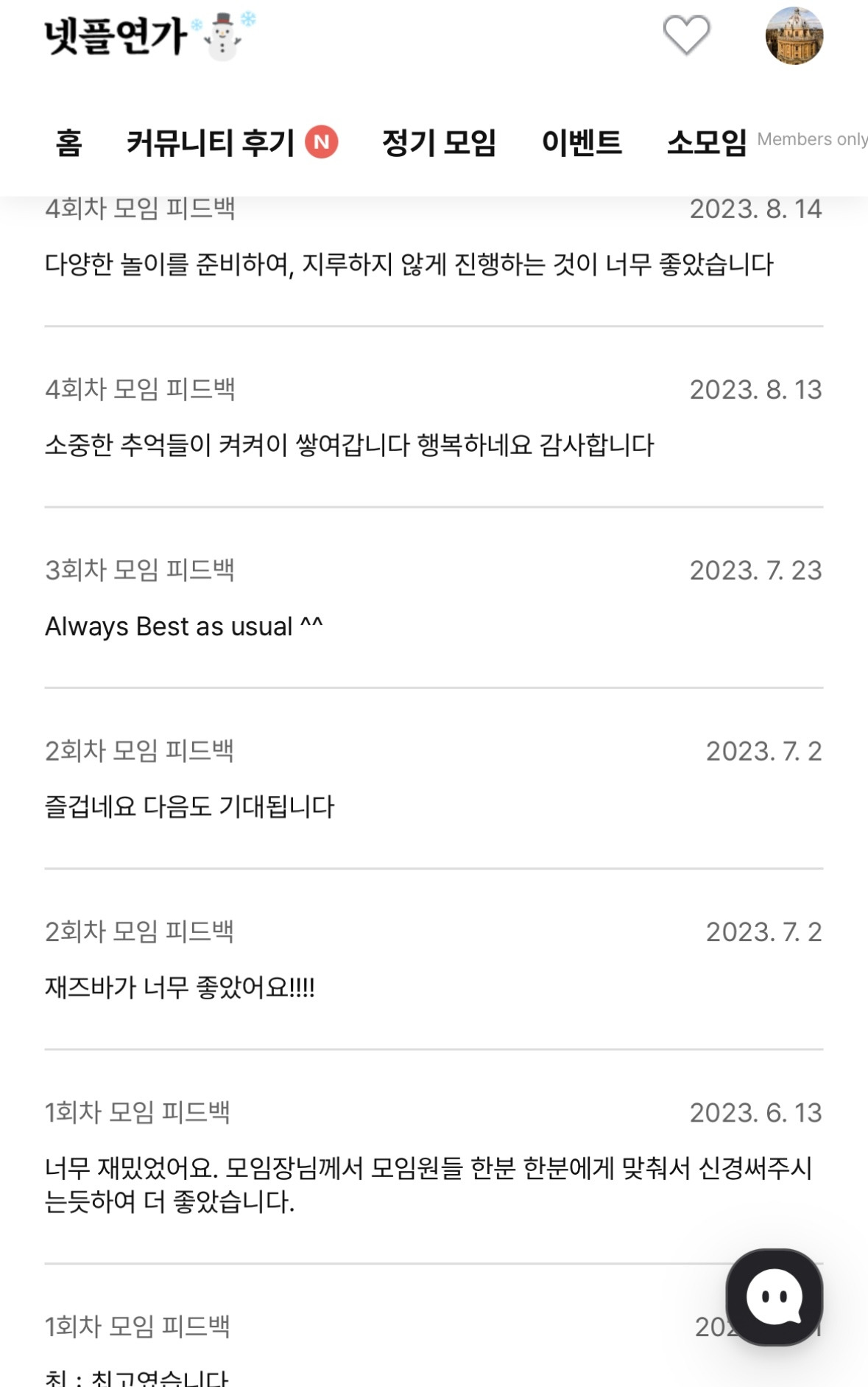 이 모임을 통해서 나 역시 재즈클럽, 음악 감상실 등 좋은 공간을 함께 갈 수 있었고 좋은 인연 또한 만날 수 있었다. 무엇보다 멤버분들의 피드백이 힘이 되었다. 내가 뭐라고... 흑흑.