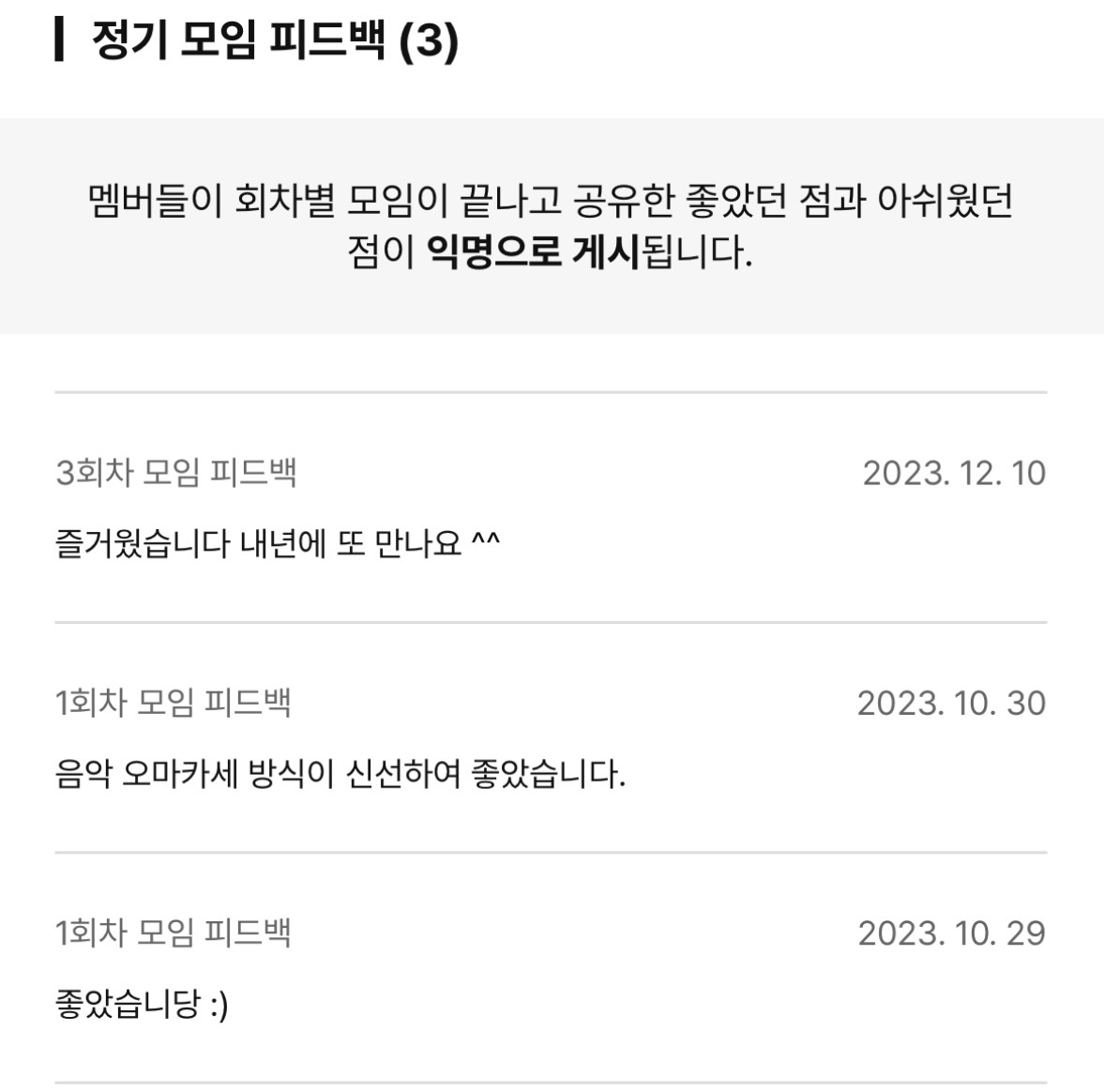 3. 음악이라는 공통의 관심사를 지닌 사람들이 모여 즐겁게 음악 이야기를 마음껏 나누면 좋겠다.