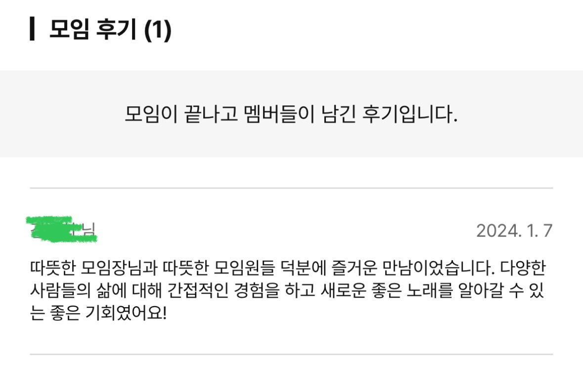 따끔한 교훈도 얻었다. 두 번째 진행하는 '음악이 흐르는 술집' 모임은 1회 차 모임만 참여하고 그 이후에는 모습을 드러내지 않는 분들이 꽤 계셨다.... (다른 모임의 얘기를 들어봐도 이런 경우가 꽤 있다고 한다.) 물론 모임 멤버들의 케미, 여러 복불복이 있긴 하다. 나도 재즈모임에 모임원으로 참여했을 때, 사실 빌런이 한 명 있어서 모임에 가기 싫어진 적이 있고, 연말이어서 모임에 참여하기 어려웠던 적도 있다. 그렇지만 모임장으로서 매우 마음이 쓰였다. 그리고 나의 모임에 대한 개편이 필요하다고 생각이 들었다. 그렇지만 같은 커리큘럼으로 진행했을 때, 이전 모임은 마지막 모임에 참여율이 거의 90%였는데... 왜 이번 모임은 다를까 고민을 많이 했다. 그래서 내가 개선할 수 있는 '나'의 요인에만 집중하기로 했다.