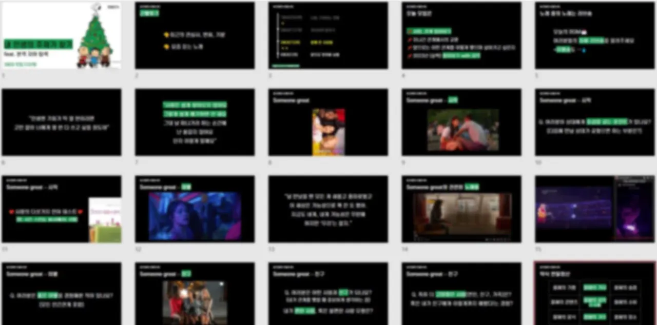 예를 들면, 영화와 관련된 주제나 키워드를 설정하고 함께 생각해 볼 질문들을 준비한다. 그리고 왜 이 질문들을 골랐는지, 왜 이 콘텐츠를 선택했는지도 미리 말씀드린다. 그리고 영화와 관련된 노래들도 함께 들어보고(이 영화에 영감을 받고 쓰인 노래라든지) 나의 해석도 덧붙여본다. 시기마다 달랐지만 나를 돌아볼 수 있는 활동들을 한 가지씩 함께 하려 했다. 이 시기에는 연말이라 함께 약식 연말정산을 해보기도 했다. 믿고 잘 따라와주신 모임원분들 덕분에 끝나는 게 아쉬웠던 모임.
