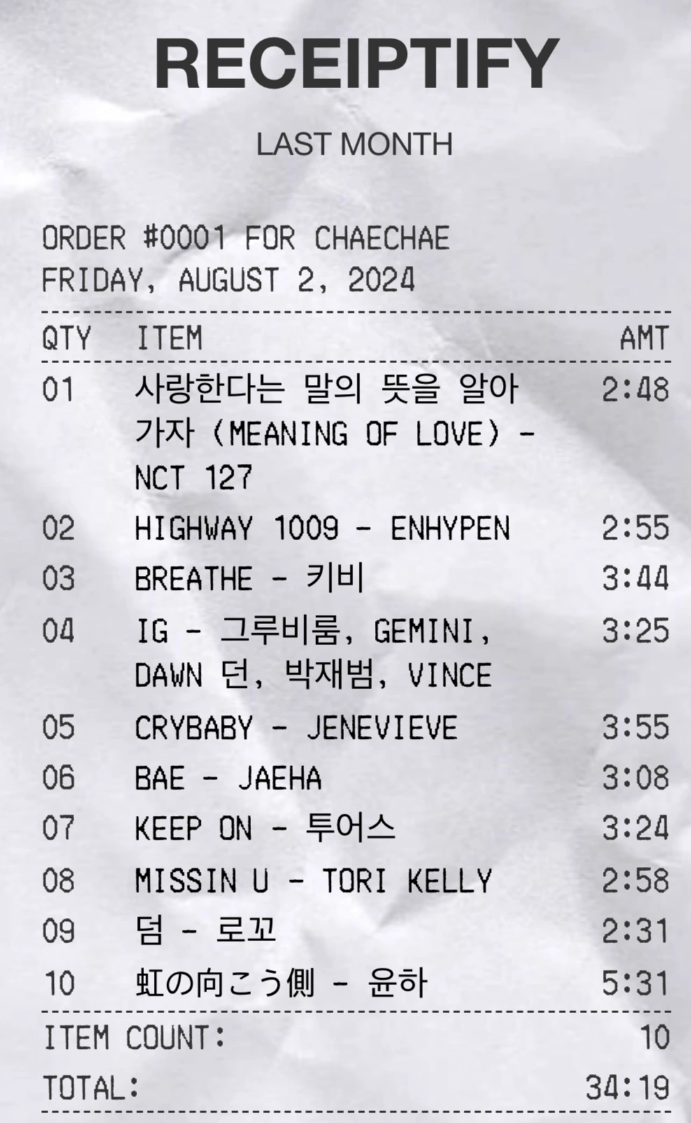 2024년 7월 최애곡, 솔직한 감정을 표현한다는 건 소중해