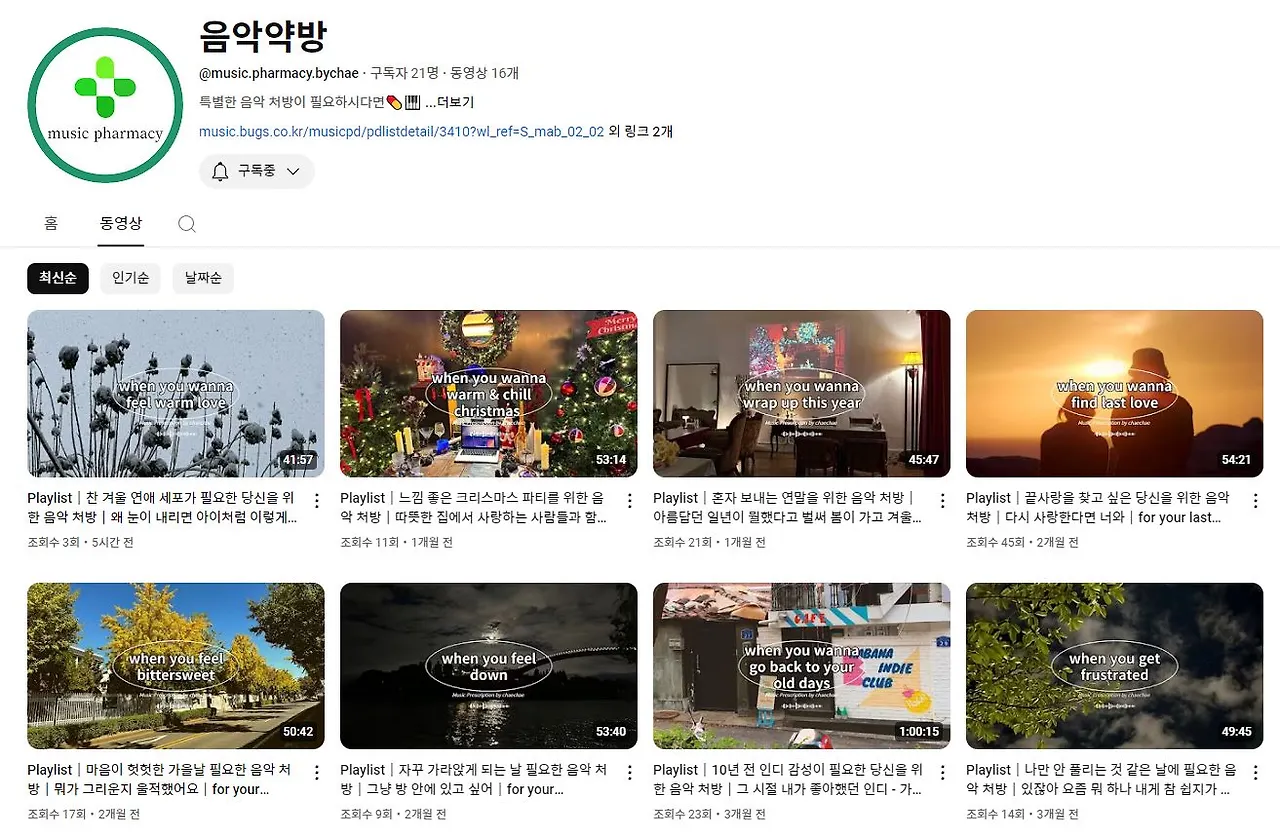 개인적으로는 올해 플레이리스트 유튜브를 시작한 게 뿌듯하긴 하다. 내년에 가시적인 성과가 있다면 좋겠지만, 없으면 말고. 그냥 나의 취향을 다양하게 큐레이션한 노래들을 누군가 즐겁게 들어준다면 그걸로도 의미가 있지 않나 싶다. 그래도 꾸준히 하는 건 목표! 다들 구독구독미.