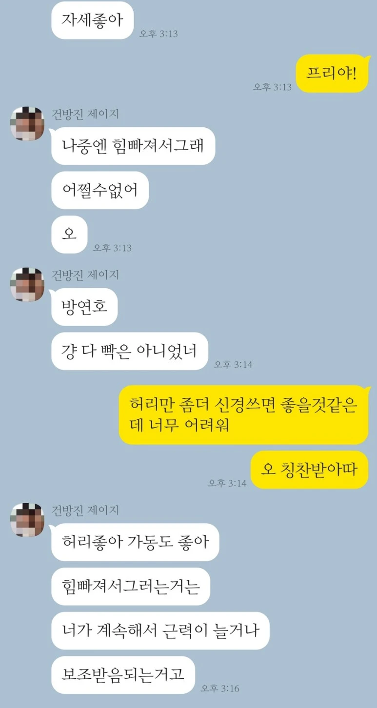 운동하면서 잘 모르겠는 건 수업을 쉬고 있던 대표님과 트레이너 선생님에게 열심히 물어보면서 했다.