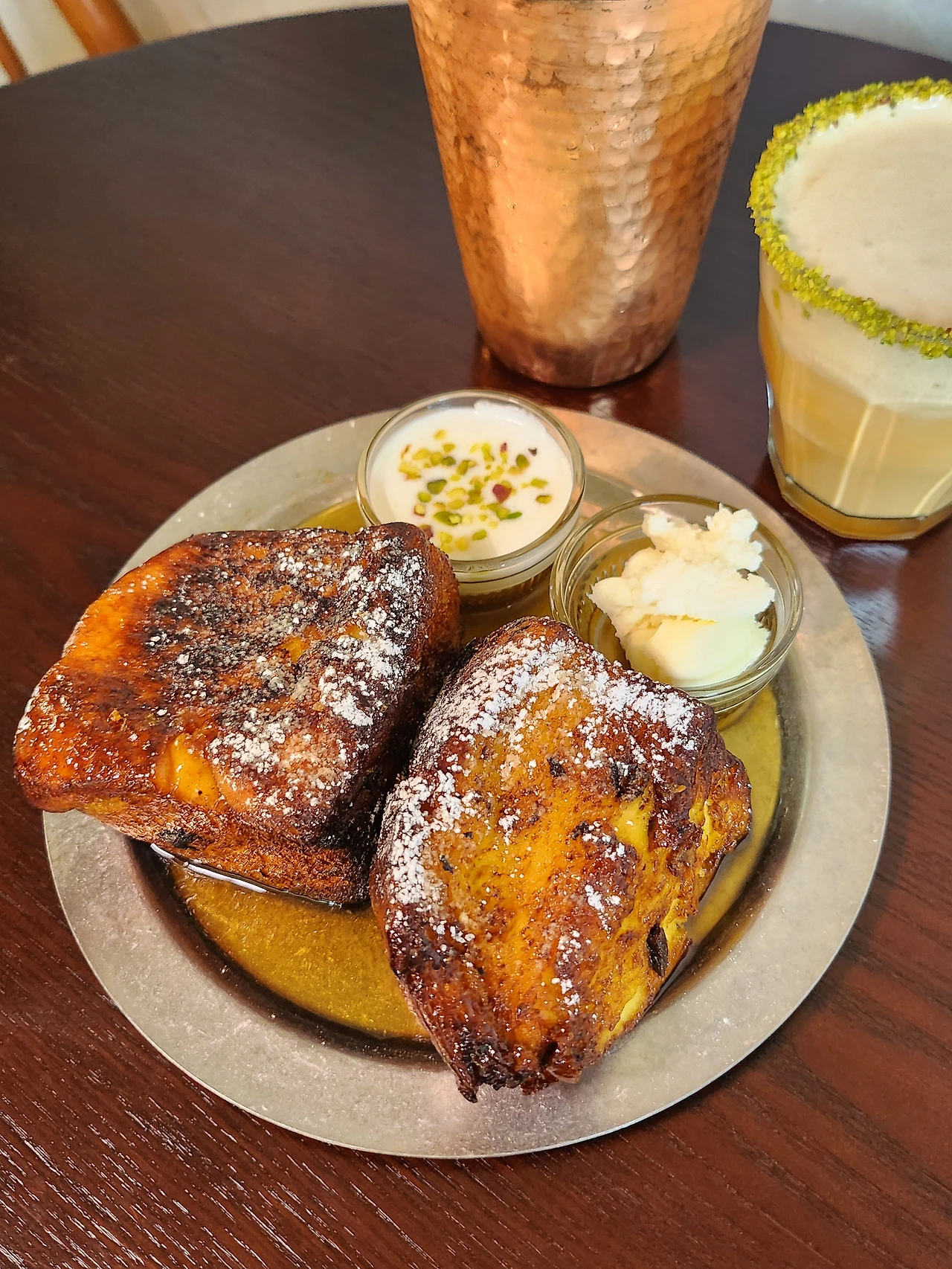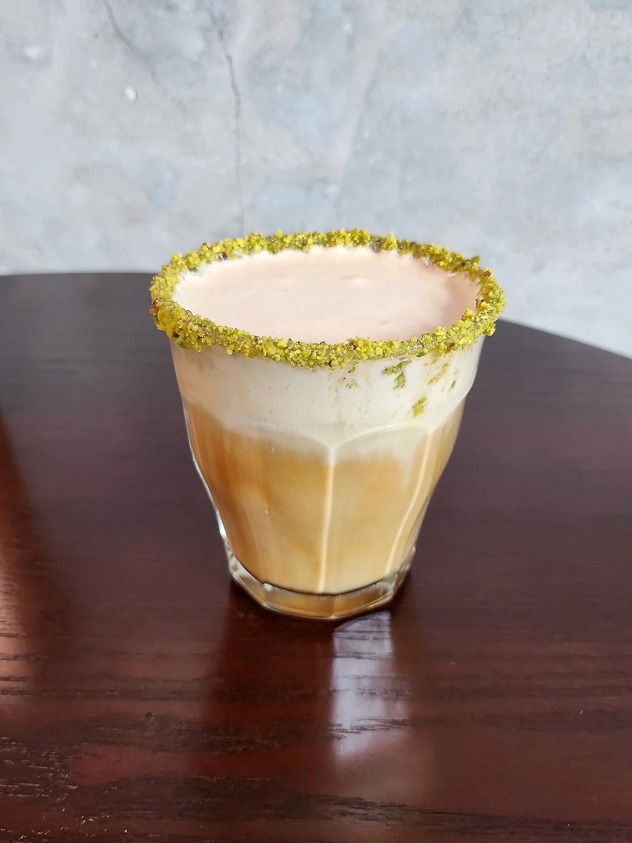 진한 라떼 위에 땅콩 크림 버터를 올렸다. 단맛이 좋은 묵직한 원두를 사용한 커피와 조화롭고 겉에 피스타치오 분태가 붙어있어 컵을 돌려가며 먹는 재미가 쏠쏠했다. 다만 음료 양을 중요시하게 여기는 나에겐 양이 살짝 아쉬웠다.