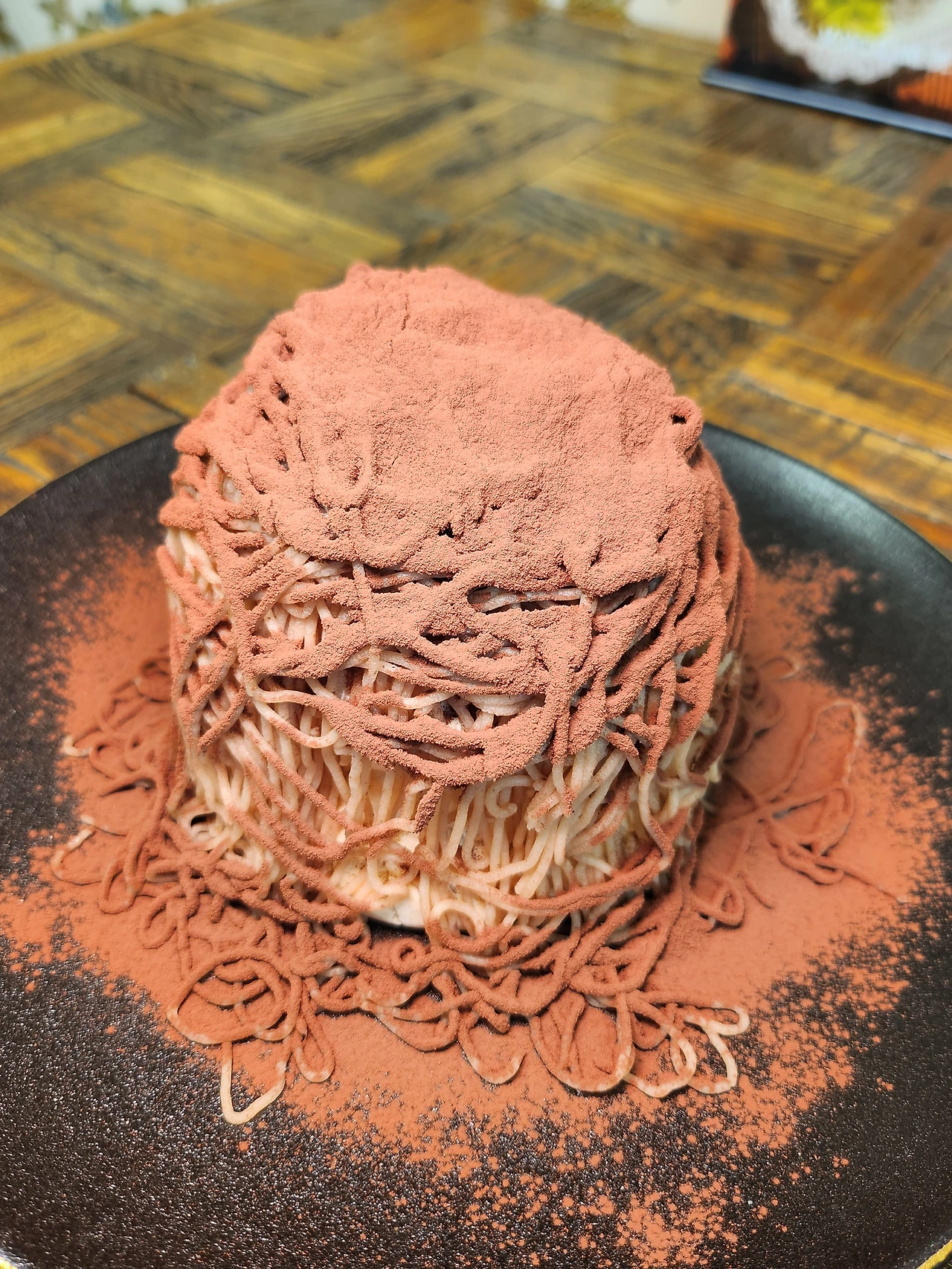 개성이 강한 밤 무스의 고소함, 티라미수 파우더를 솔솔 뿌려 달콤한 향이 풍부하게 느껴지고 모든 재료가 한데 모여 조화롭게 잘 어우러진다. 비싼 감이 없지 않아 있지만 가격이 아깝지 않을 정도로 맛있었다. 이 글을 쓰는 지금도 생각날 정도면 말 다한 거지 않을까?