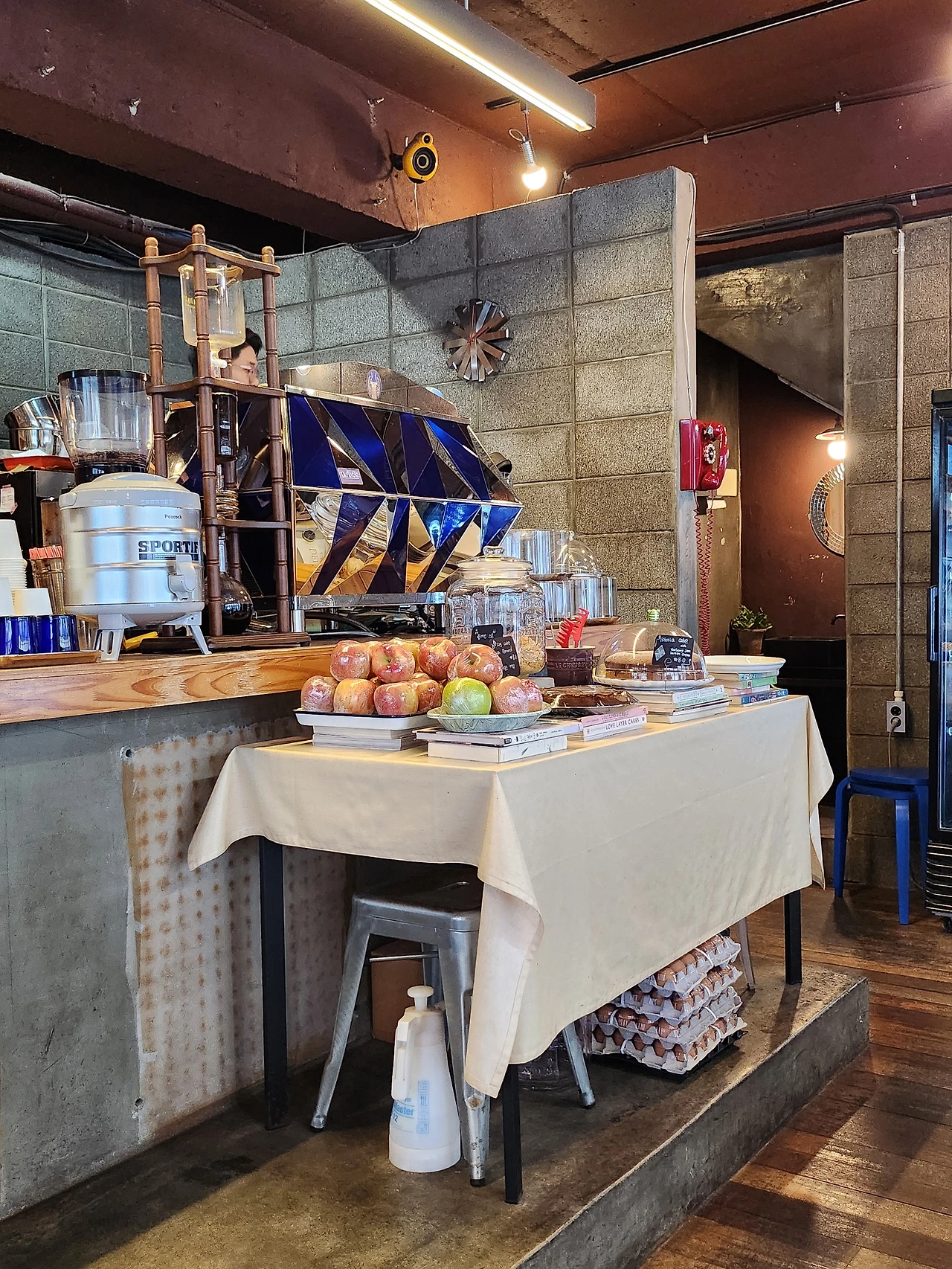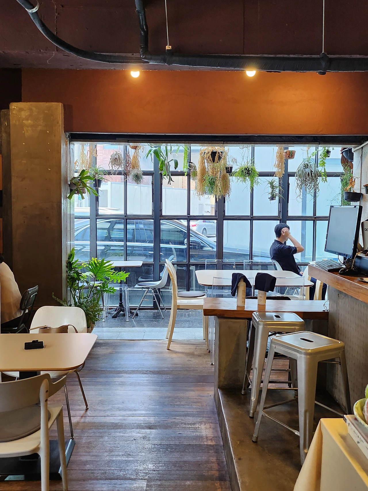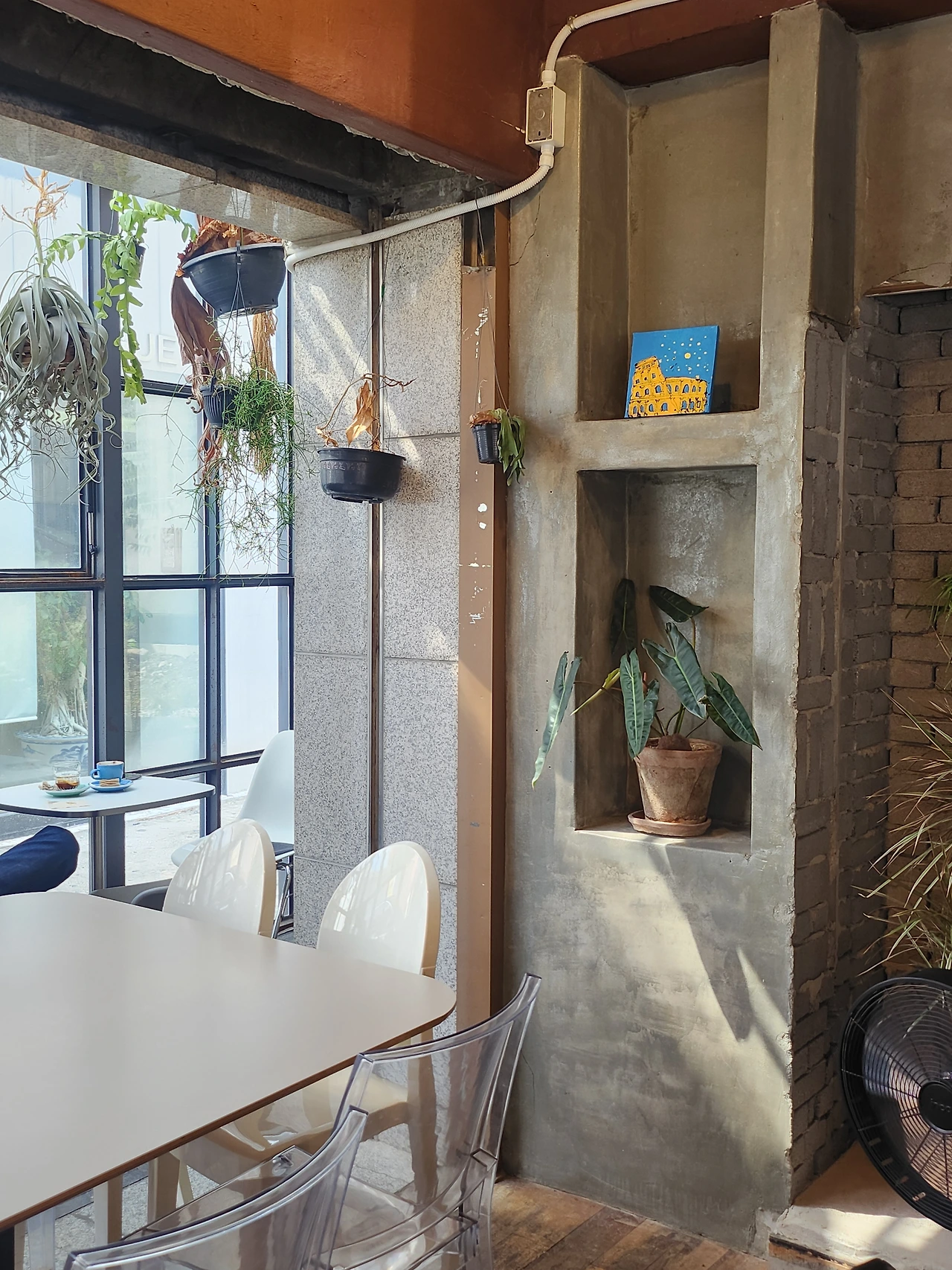 가게 곳곳에 식물을 둬서 푸릇푸릇한 감성이 돋보이고 다른 한쪽은 빈티지하고 따스함이 묻어나는 인테리어로 꾸며 절로 카메라를 들게 만든다.