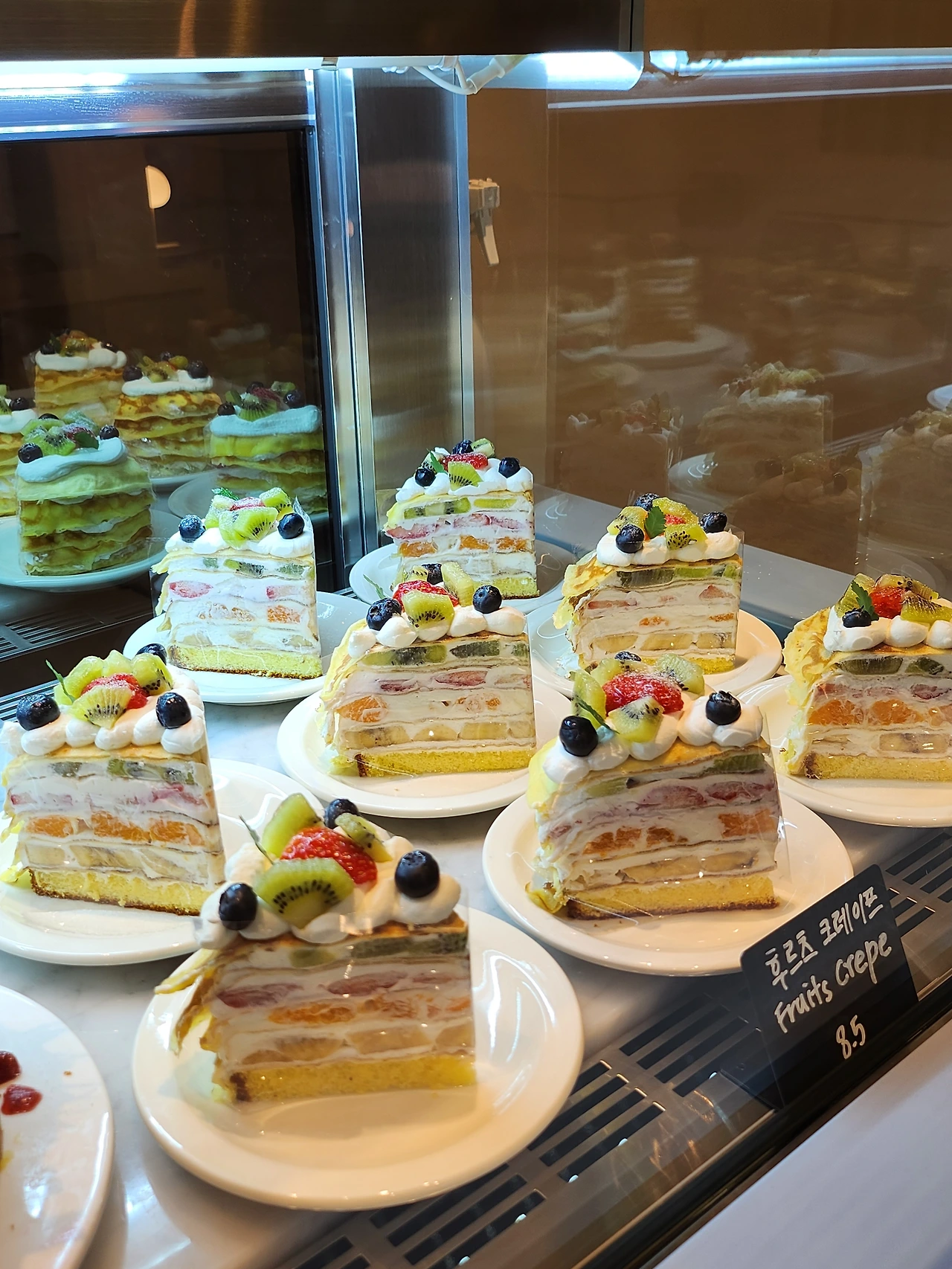 몰러의 신메뉴 크레이프 케이크는 생크림 사이에 딸기, 귤, 블루베리, 키위, 바나나 총 5가지 당도 높은 계절과일을 듬뿍 넣어 새콤달콤 달달한 맛을 온몸으로 느낄 수 있다. 포크로 과일이랑 같이 돌돌 말아서 먹는 즐거움을 선사해 주는 게 또 다른 묘미 아닐까?