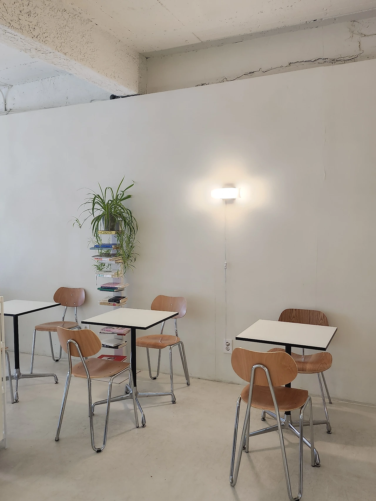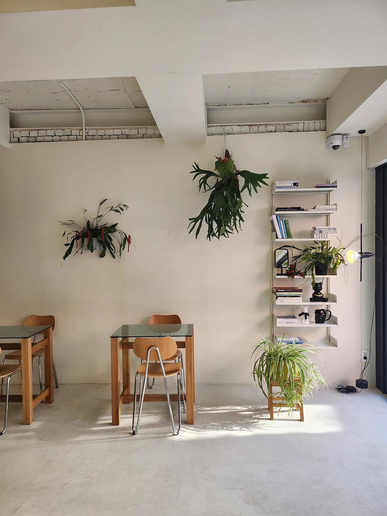 가게 내부는 깔끔한 화이트 톤 인테리어가 인상적이고 공간에 차분함을 더해준다. 전체적으로 이 카페는 여러 소품으로 화려함을 추구하지 않고 최소한의 소품을 활용해 곳곳에 포인트를 줬다.