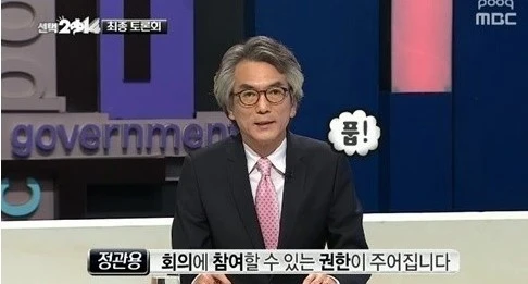 귀에 익숙한 MBC 백분토론 시그널 음악이 흐르고, 정관용 진행자가 진지하게 오프닝을 시작하는데, 큭큭 웃음이 나온다. 하지만 그는 세상 진지한 표정과 목소리로 자신에게 주어진 임무를 수행해간다.