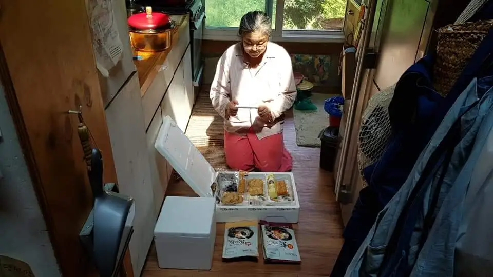 엉덩이와 허리가 몇 번이고 아파서야 강원도 홍천 진경쌤 댁에 도착했다. 진경쌤은 오뎅을 보시더니 다소곳이 앉아 사진을 찍으셨다.