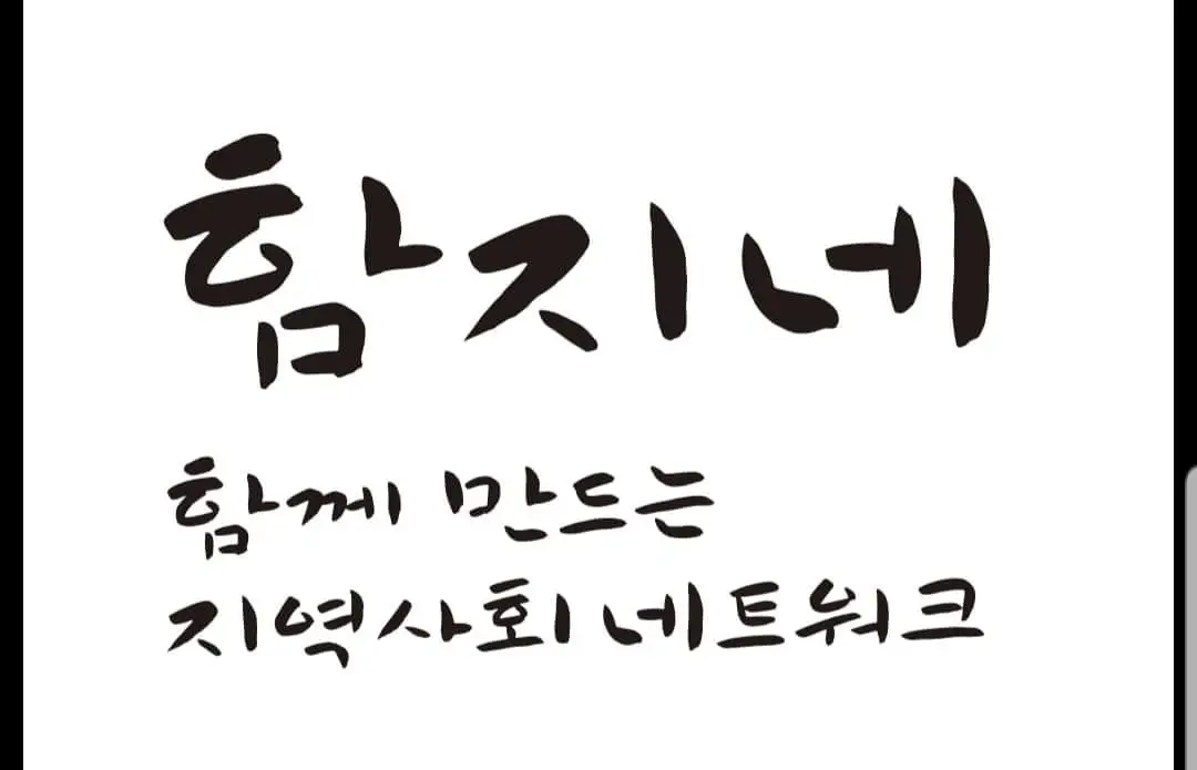 "함께 만드는 지역사회 네트워크의 줄임말요! 부산오뎅 30만원어치 사갈테니 함지네 글씨하고 바꿉시다."