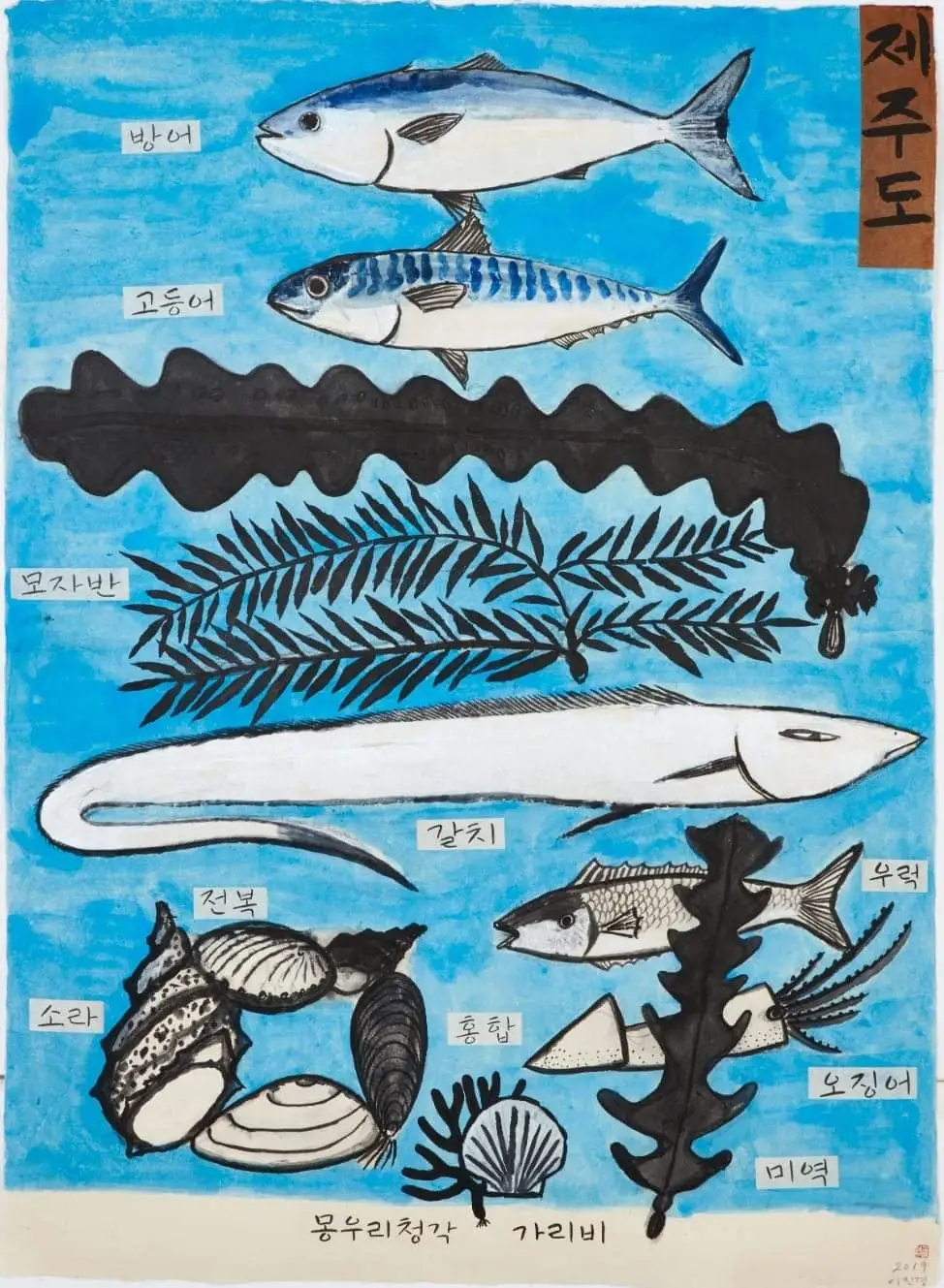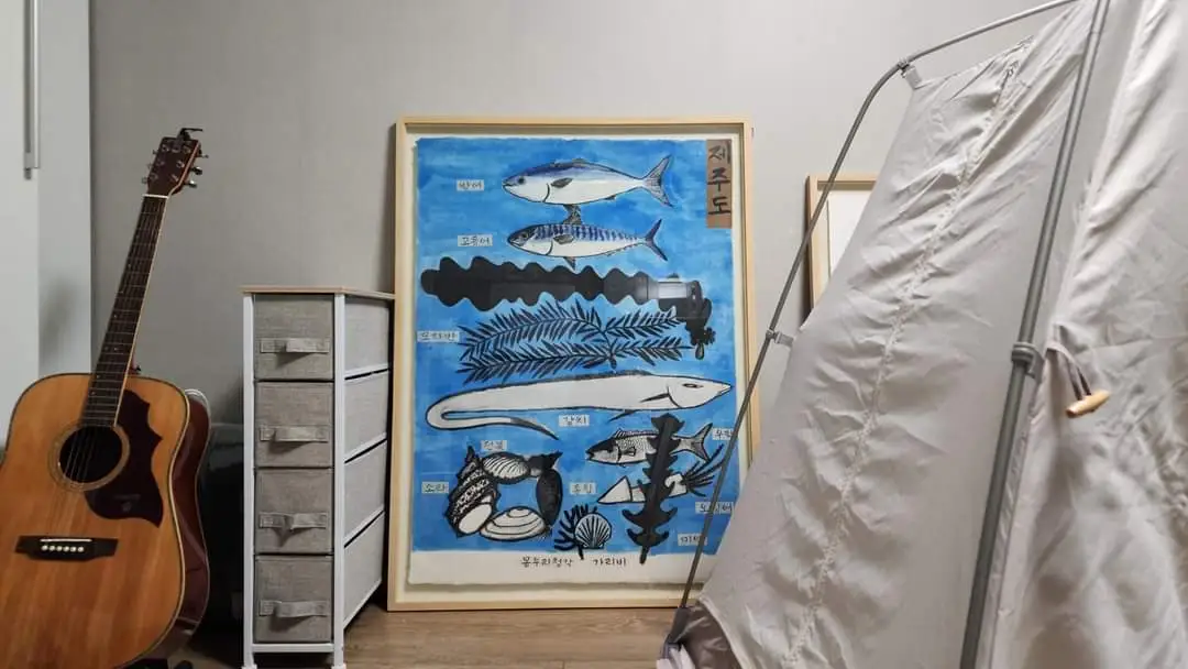 그림빚을 갚는데 거진 1년이 넘게 걸렸다.제법 큰 그림이다. 자취방에 두고 제주도 갈치, 방어, 고등어, 우럭, 전복, 소라가 먹고 싶을 때 힐끗 쳐다본다.