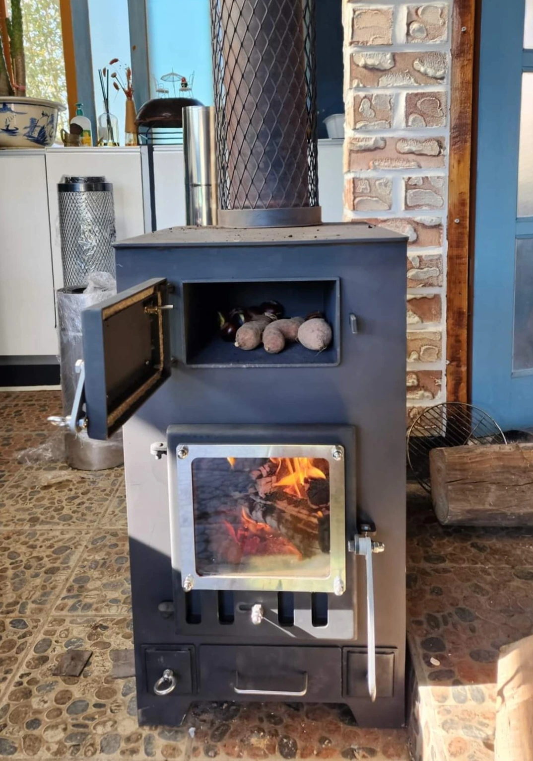 집안에 들이지 못하고 밖에 내팽개쳐진 난로