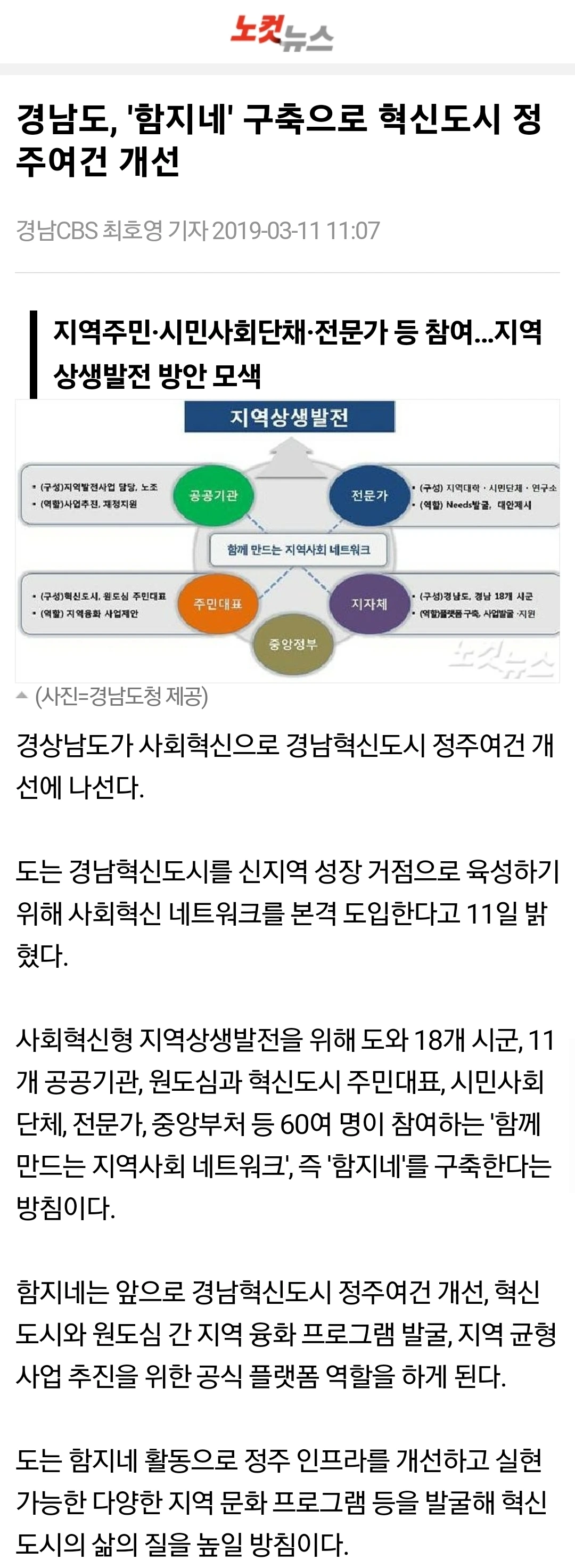 경남혁신도시의 안정적 정착과 발전을 위해 만든 사회혁신 네트워크가 바로 '함지네(함께 만드는 지역사회 네트워크)'였고,