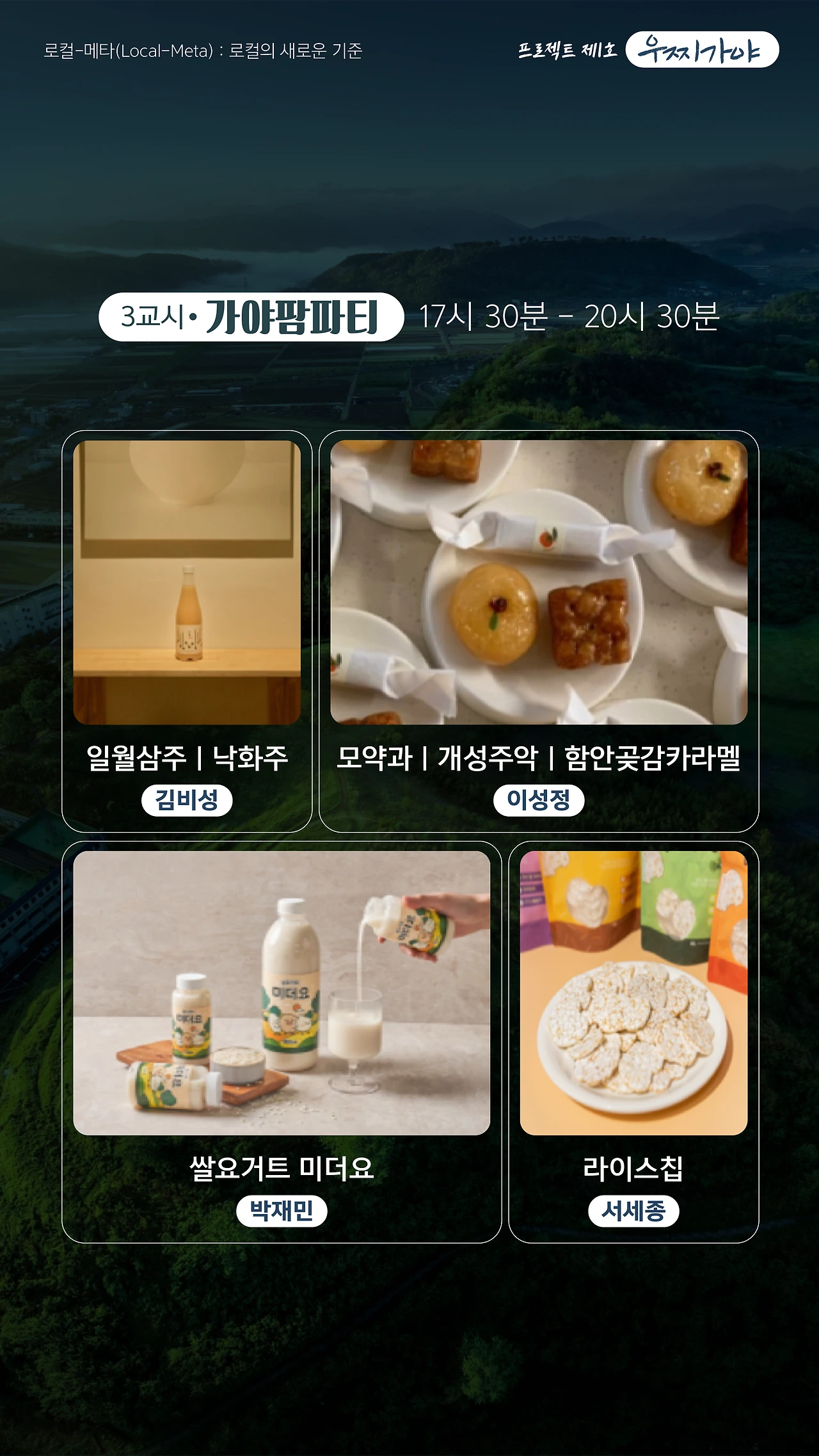 가야팜파티 때는 아라가야 함안의 쌀로 만든 술과 다과, 요거트 그리고 의령의 라이스칩이 나온다.
