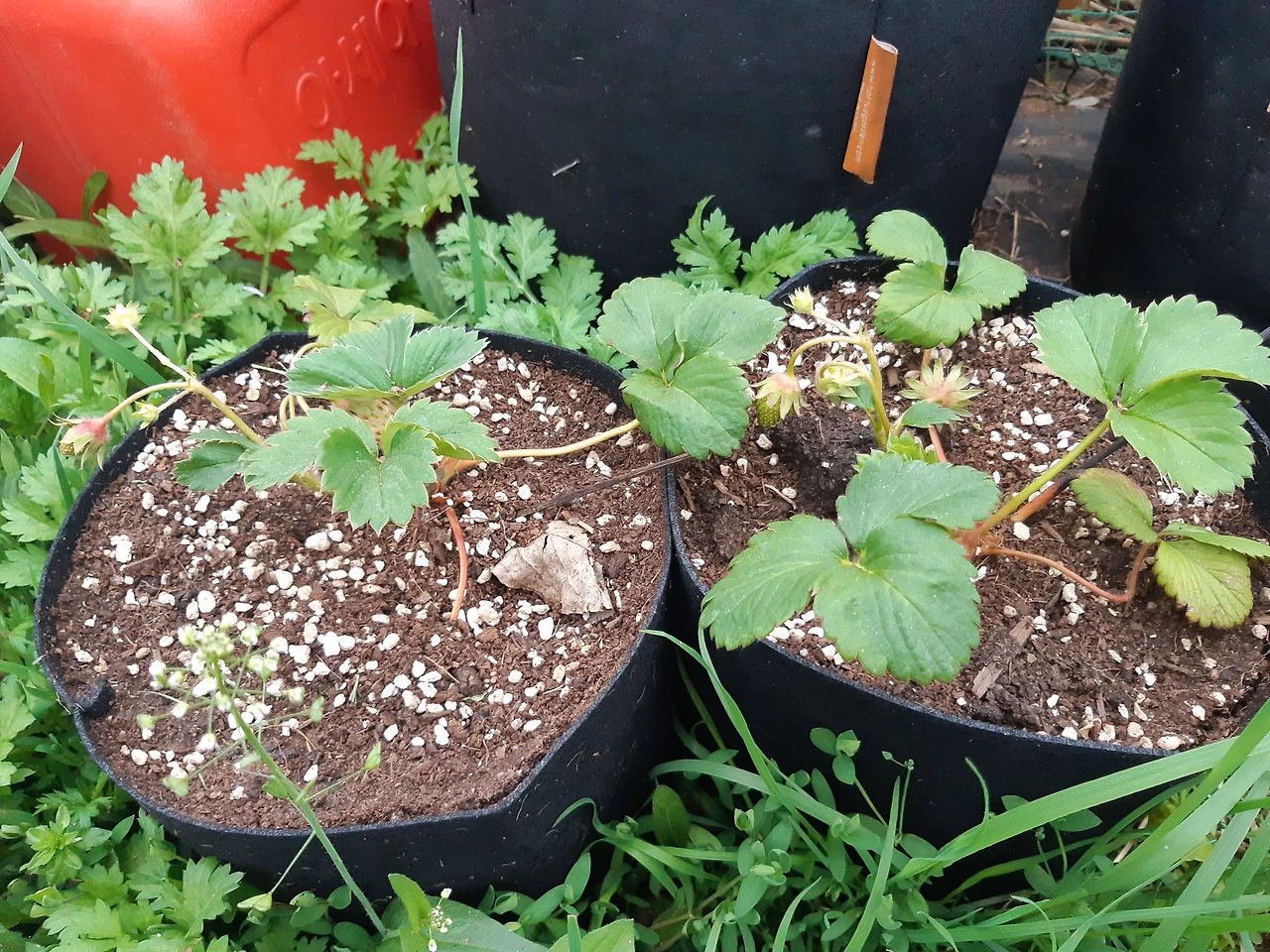 콩 중에는 완두콩을 제일 먼저 심고 강낭콩을 심는다. 1주일 정도 지나고 나니 싹이 나오고 무럭무럭 자라고 있다. 딸기는 8월에 아기 순을 잘라서 심었던 것이 월동을 했다. 올해는 킹스베리 모종을 구입해서 심었다. 과연 킹스베리가 될지 궁금하다.