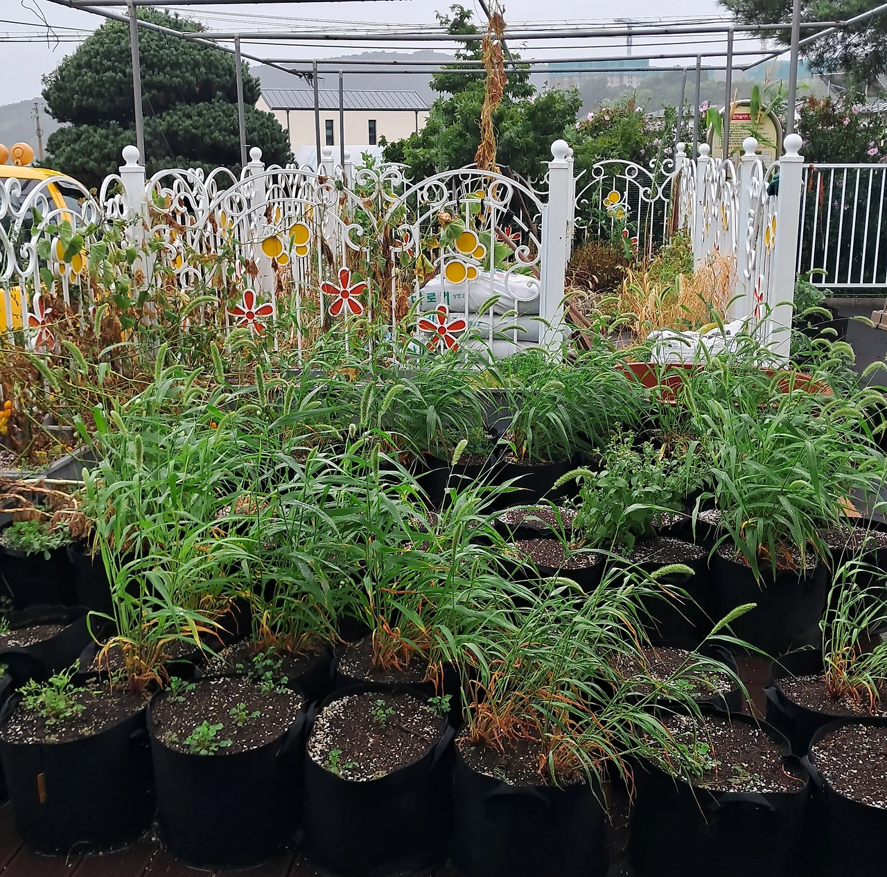 태풍피해를 막기 위해 감자를 캔 화분들을 옮기다 보니 화분 안에 강아지풀이 가득했다. 화분을 한 참 들여다보면서 고민에 빠졌다. '곧 김장 무 씨를 심어야 하는데...'