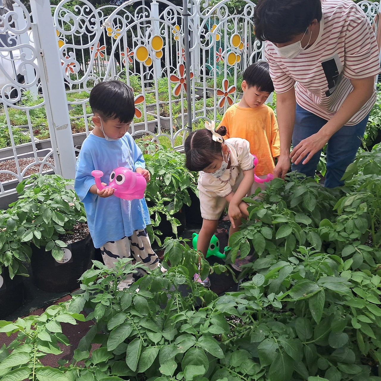 유치원 놀이터를 영아전담 어린이집 동생들도 함께 사용을 하는데 화분에서 감자싹이 나오거나 어린 모종을 심어 놓으면 '아장아장' 걸어와서 가만히 들여다보다가 살며시 싹을 뽑아버리는 일이 종종 생긴다.