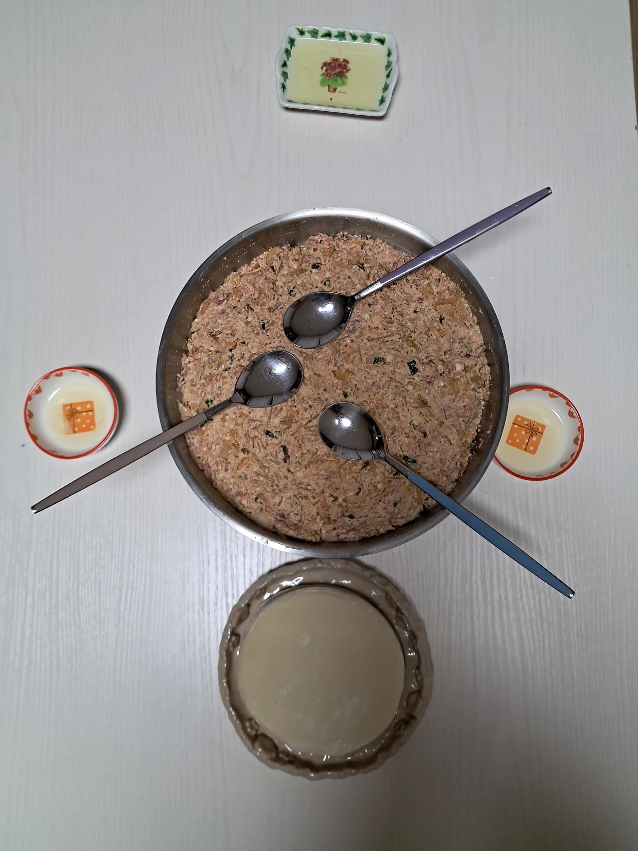 늘 함께 하고 싶었던 가족이 모여서 아빠가 좋아했던 만두를 빚었다.
