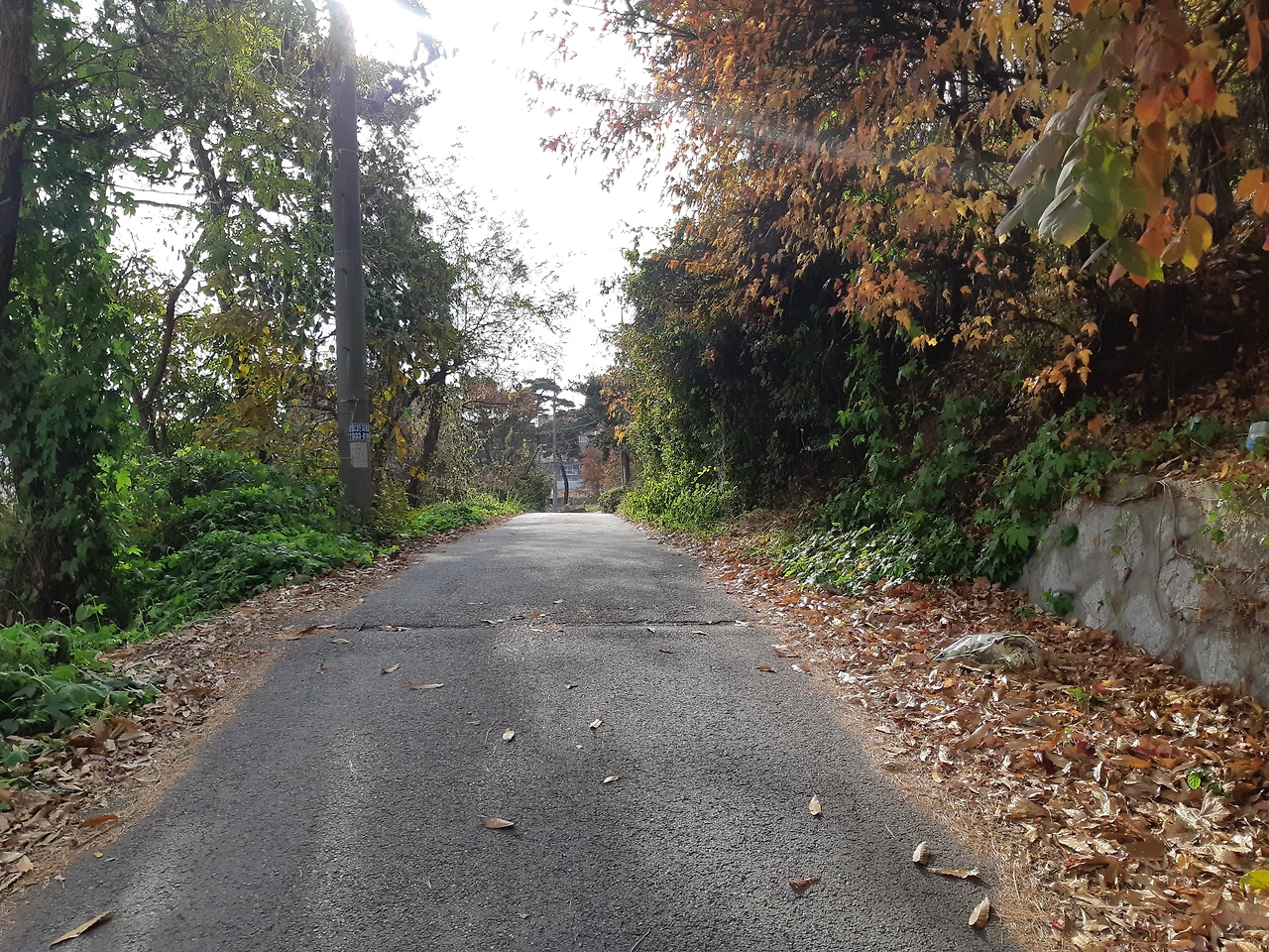 봄이면 살구가 주렁주렁 열린 벽돌집을 지나고 마을 어른들을 위한 운동기구를 지나면 언덕 위에 있는 빌라 입구가 보인다. 1998년에 신혼살림을 시작했던 빌라다. 빌라 입구에 있던 커다란 개장과 돼지 사육장은 없어지고 거대 주택이 들어서 있다. 문에서 한참을 걸어 들어가야 하는 집이다. 여름에 얼핏 지나가다 붉은 장미 넝쿨이 대문을 장식해 주고 있었던 기억이 난다. 들장미 소녀 캔디에서 앤서니 집을 연상하게 했었다. 지금은 국화가 심어져 있다. '어떤 부자가 살까?'이 집을 한 번 흘깃 들여다보면서 지나쳤다. 세 갈래 길이 생긴다. 나는 직진을 해서 새로운 도로로 갈 것인지 우측 길을 따라 산책길로 갈 것인지 고민을 했다. 나는 옛길을 찾아서 우측으로 발걸음을 돌렸다.
