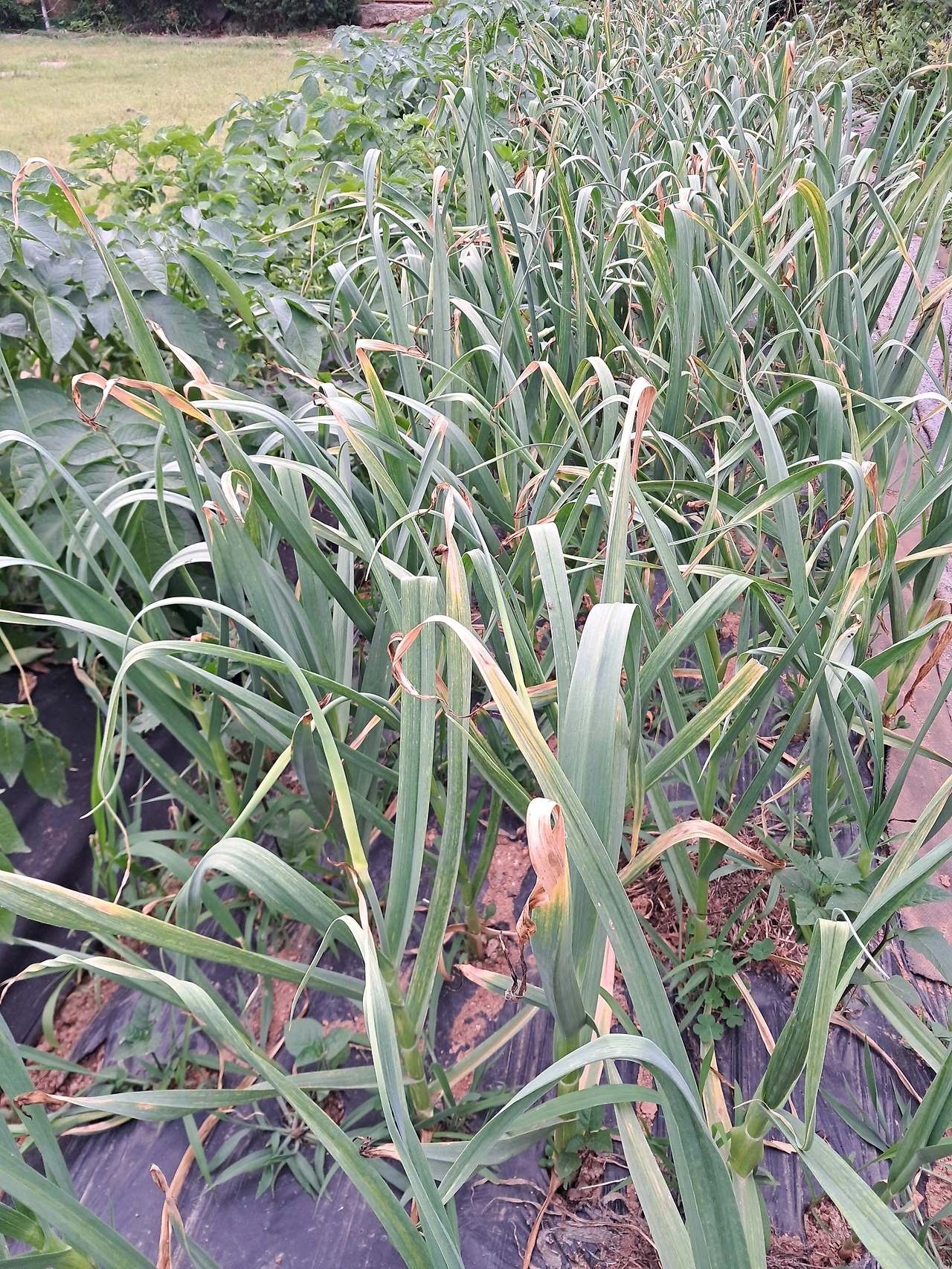마늘 한 포기를 둘러싼 수십 개의 풀을 뽑으며 마늘과 대화를 시작했다.