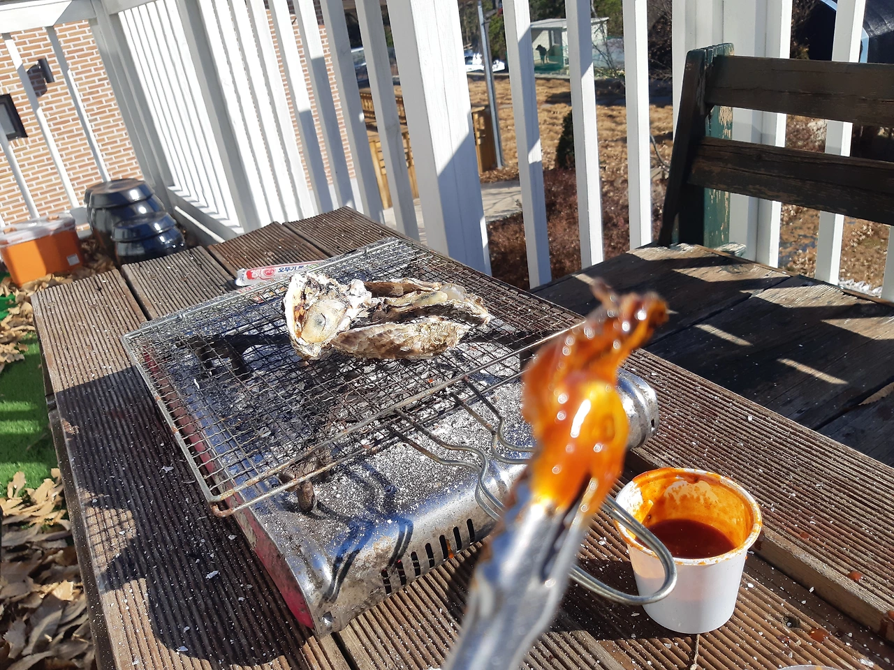 굴이 익으면 껍질에서 잘 떨어진다. 처음에는 굴만 먹는다. 입 안을 가득 채우는 굴 향과 불맛에 고소하고 짭짤한 맛이 더해진다. 다음은 잽싸게 초고추장을 발라서 먹는다. "꿀맛이로구나."