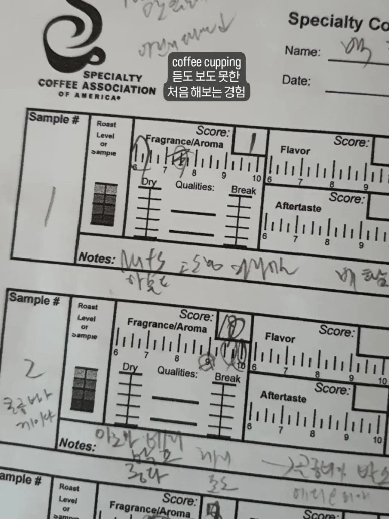 (커핑 구경하는줄 알고 그를 따라갔다가, 갑자기 참여하게 되어 당황했다. "제.. 제가요?" "우.. 우리도 해..?")