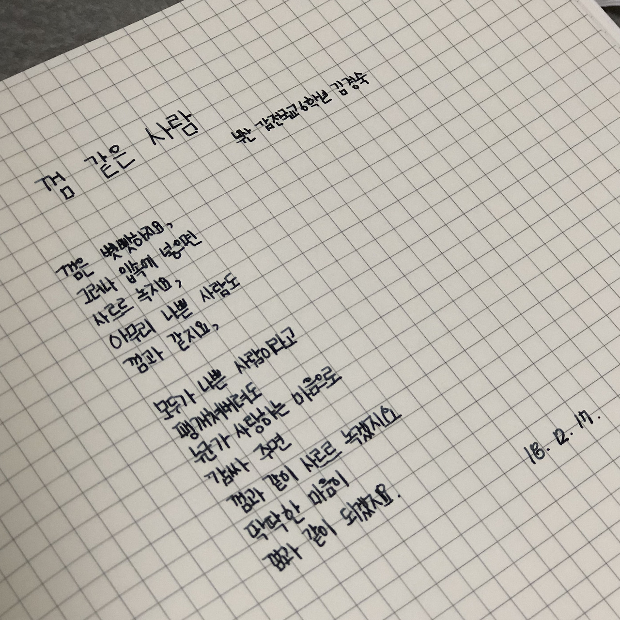 껌은 빳빳하지요,그러나 입속에 넣으면사르르 녹지요,아무리 나쁜 사람도껌과 같지요,모두가 나쁜 사람이라고팽개쳐버려도누군가 사랑하는 마음으로감싸 주면껌과 같이 사르르 녹겠지요딱딱한 마음이껌과 같이 되겠지요.