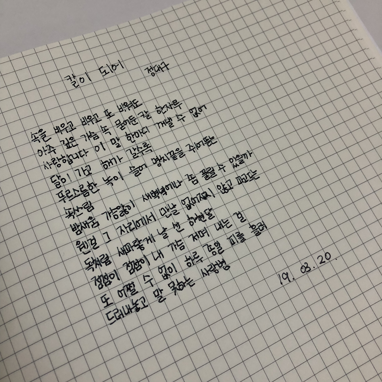 속을 비우고 비우고 또 비워도아주 깊은 가슴 속 묻어둔 칼 한자루사랑합니다 이 말 한마디 꺼낼 수 없어달이 가고 해가 갈수록푸르스름한 녹이 슬어 명치끝을 쥐어뜯는속쓰림밤새움 가슴앓이 새벽녘에나 좀 풀릴 수 있을까웬걸 그 자리에서 만날 없어지지 않고 파고드는독처럼 새파랗게 날 선 하현달점점이 점점이 내 가슴 저며 내는 걸또 어쩔 수 없이 하루 종일 피를 흘려드러내놓고 말 못하는 사랑병