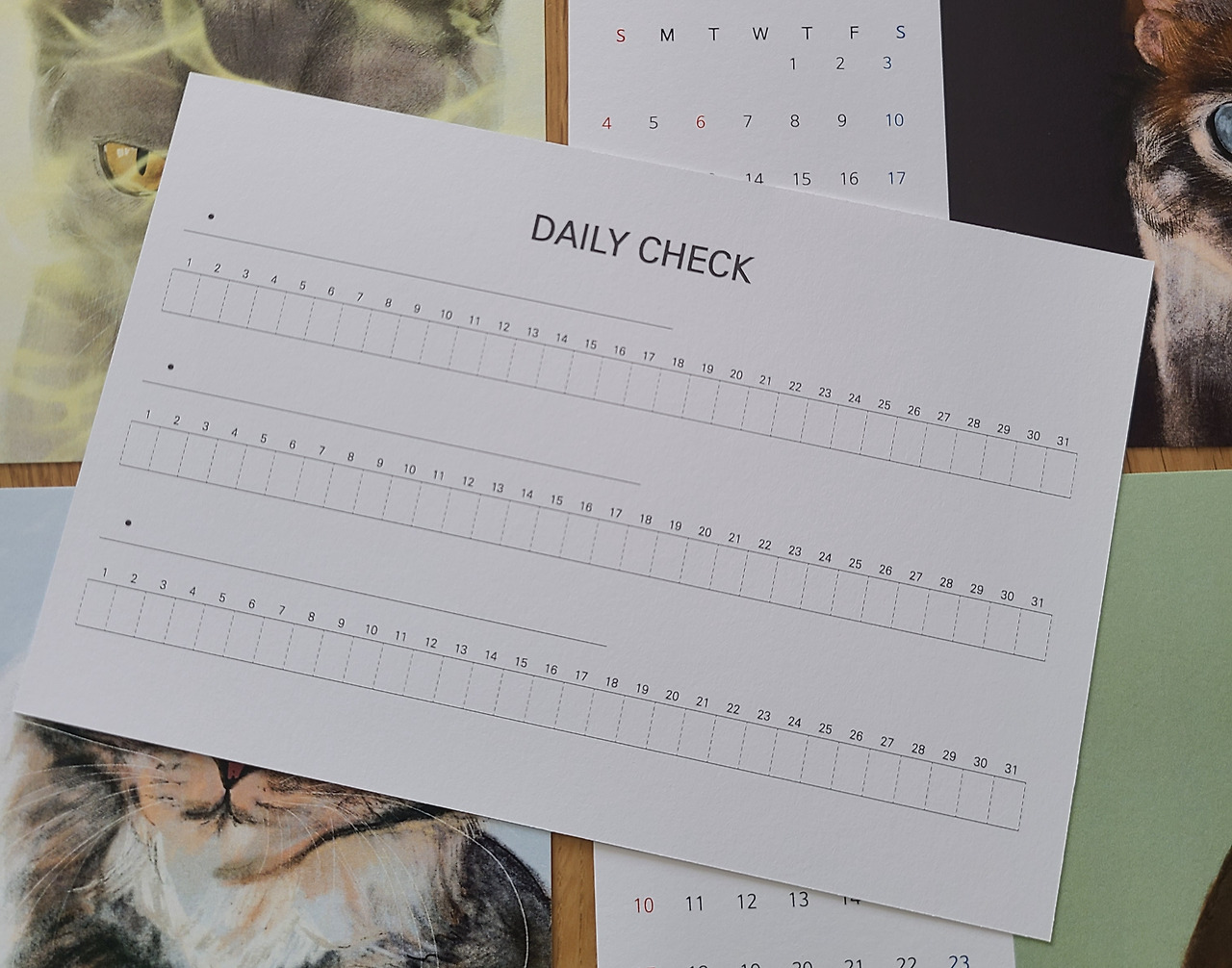 뒷면은 데일리 체크를 인쇄하여 매달 목표한 것을 일별로 체크할 수 있도록 만들었습니다.