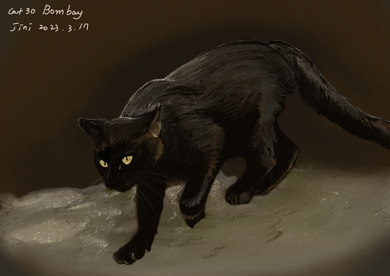 중형의 고양이로 아몬드형의 금색 눈과 광택이 있는 검은 털이 인상적이다. 근육이 매우 잘 발달해 있어 무게가 많이 나가는 편이다. 가늘고 짧으며 매끄러운 털이 온몸에 빽빽하게 나 있다.
