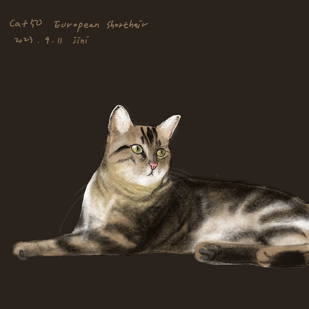 구름느낌 같은 부드러운 털을 가진 고양이다. 우리가 익히 알고 있는 줄무늬 고양이와 외양은 비슷한데 털 의 느낌이 훨씬 부드러워 보여 그 느낌을 살려 보려 했다.