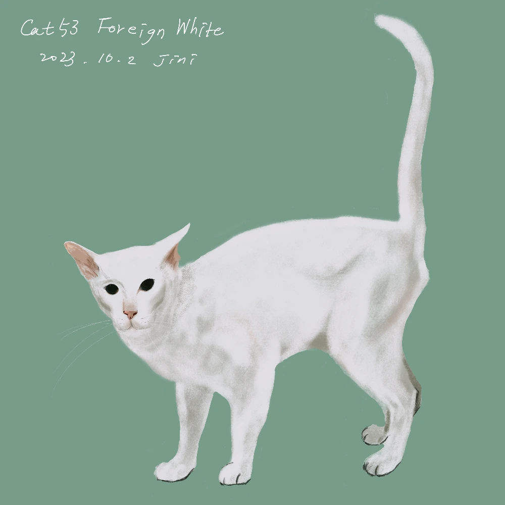 근육질의 하얀 고양이 언뜻 보면 고양이 전문가가 아니고는 구별하기는 쉽지 않은 듯하다. 내 눈에는 그냥 흰고양이, 얼룩무늬고양이, 다리가 짧은 마른 뭐 이 정도로 구분하는 정도이니 말이다. 이렇게 50여 마리를 그리고 보니 고양이가 참 다양하고 여러 품종이 섞인 경우 더욱 구분이 쉽지 않다는 정도로 알아가는 중이다. 푸른 눈이 특징이라는데 너무 짙어서 검은색에 청색이 도는 정도라 위와 같이 그려봤는데 나중에 푸른 빛깔 눈으로 다시 한번 그려봐야겠다.