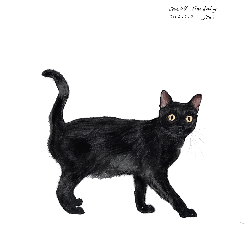 검은빛의 윤기 나는 털 노란 빛깔의 황금색 눈 검은 고양이 앙증맞은 작은 얼굴 날렵한 몸매 이 고양이 품종이 만달레이라 하는군요. 특징에 대해서 위키에서 정보를 찾아봤습니다.