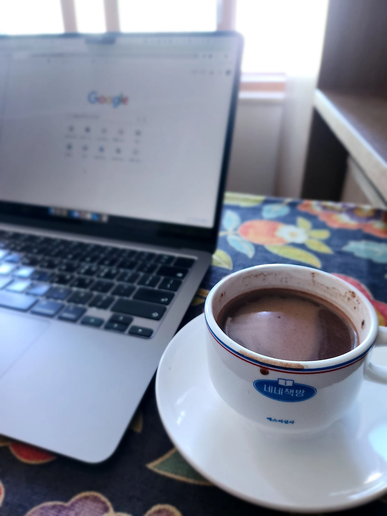 수익이 아직 들어오지 않으니 백수인 건가? 사업자등록을 했으니 사업가인가? 시간과 장소에 구애받지 않고 적절한 수익이 들어오는 시스템을 만들고 싶다. 꾸준함 + 뭔가가 필요한데 꾸준함은 있으나 뭔가가 부족하다. 재택 아닌 재택이 되어 집에서 밥 먹고 차 마시고 하루가 그렇게 가기를 반복한다. 이날 날이 스산하여 따뜻한 코코아 한잔 레트로한 컵에 담아 먹고 싶은 날이었다.
