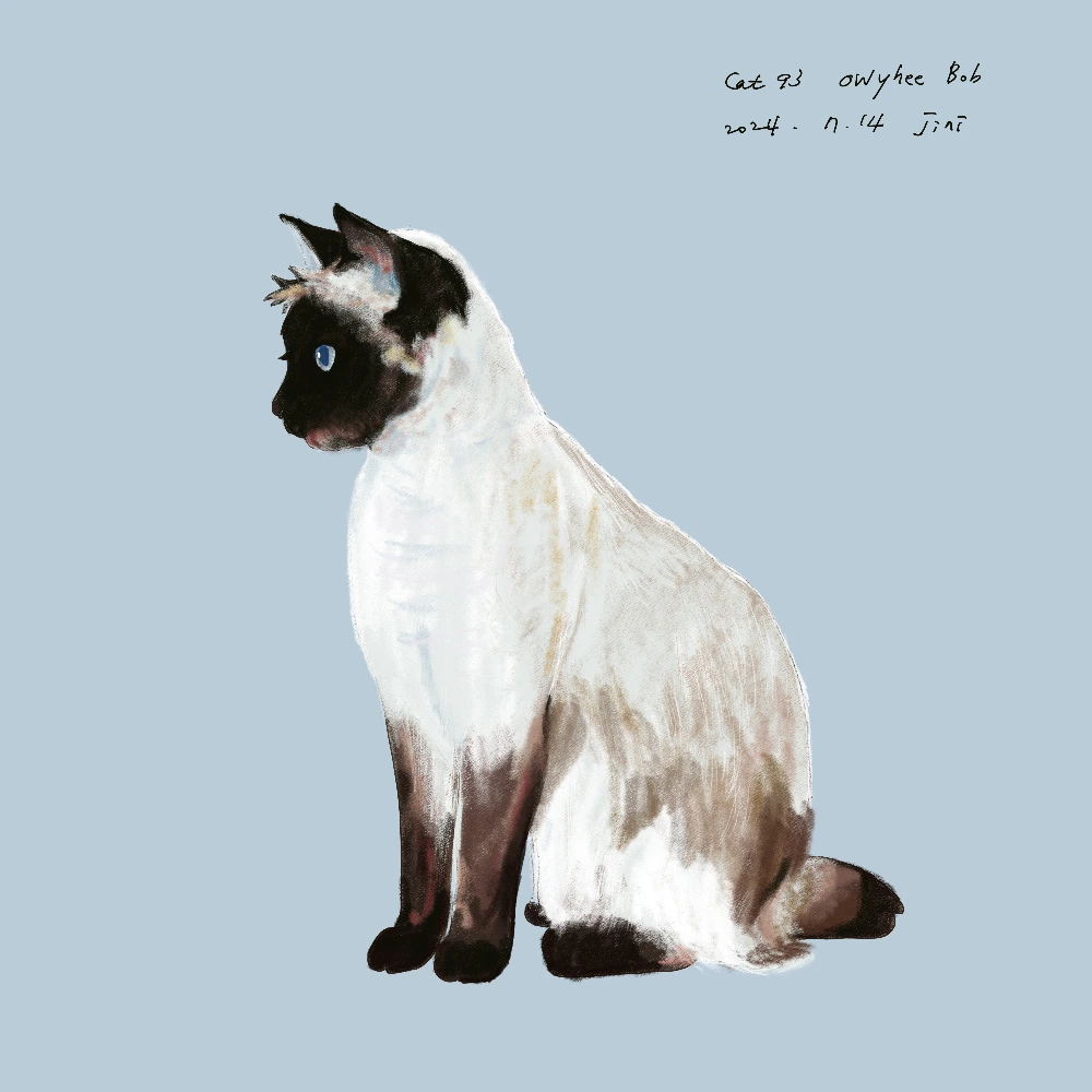 오위히 밥 샴고양이와 같은 색깔인데 모양새가 좀 다르다. 오위히 밥 아흔세 번째 고양이 고양이 품종을 따라 사실에 가깝게 그리기 해온 이 작업도 이제 7마리만 남은 상태다. 끝나지 않을 듯 길어 보이던 작업도 이제 한~두 달이면 마무리가 된다. 마무리되고 나면 작은 전시회도 열고 백과사전을 만들 기회가 생기면 좋겠다.