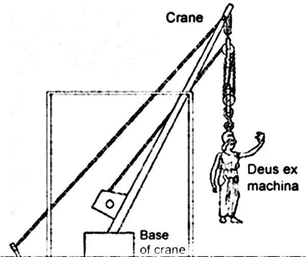 누가 자를 수 있나. 사람의 힘으로는 실을 풀거나 끊어낼 수 없다. 에우리피데스는 신의 힘으로 사태를 일단락 짓고자 했다. 메데이아는 남편 이아손에게 헌신해왔다. 그런데 그 남편이 코린토스의 공주와 바람이 나 결혼까지 하려 한다. 그녀는 이아손을 단죄하기 위해 그가 사랑하는 이들을 살해한다. 코린토스의 위정자들이 살인마 여인을 조용히 놓아줄 리 없다. 그러나 일을 마친 메데이아는 새 애인이 사는 아테네로 무사히 날아간다. 할아버지 헬리오스 신에게서 빌린 용이 끄는 수레를 타고 탈출한 것이다. 이를 데우스 엑스 마키나 deus ex machina라고 한다. 신이 아니면 풀기 어려운 국면이다. 연극에서 신의 힘을 나타내기 위해 크레인 같은 기계장치로 인물을 구하는 방법이다. 문제를 차례차례 해결할 수 없으므로 주인공만 단번에 구해 상황을 정리하는 방식이다. 고대 작가는 인간으로는 해결이 되지 않기에 신이든, 기계이든 초월적인 힘을 빌었다.