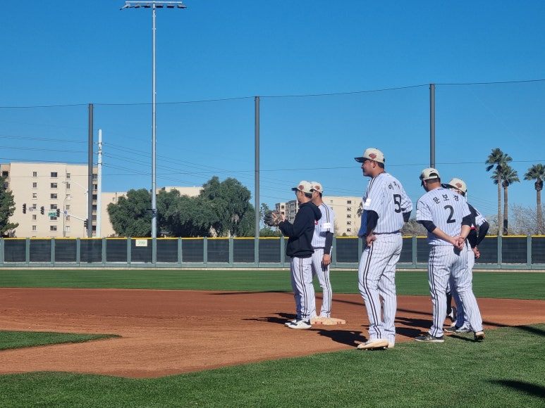 23시즌 전 애리조나 캠프에서 훈련에 임하던 이재원