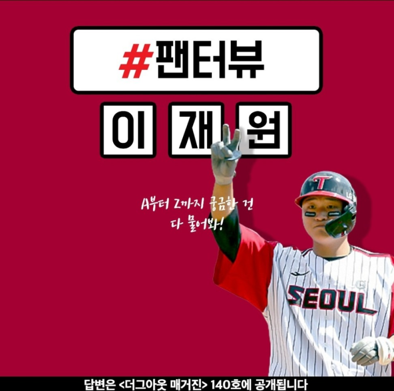 이재원과의 두 번째 인터뷰가 실린 코너는 바로 '더그아웃 팬터뷰'. 에디터가 혼자서 질문지를 완성해야 하는 다른 코너와는 달리, 팬터뷰의 질문지는 팬들이 보내준 질문들로 완성된다. 간혹 팬들의 참여가 저조할 땐 에디터의 역량으로 새롭게 채워야 하는 비극(?)이 생겨나기도 하지만, 이재원이 워낙 LG 팬들의 큰 지지를 받고 있던 시점이라 그 부분에 대해선 큰 걱정을 하지 않았다. 그리고 아니나 다를까, 딱히 내가 추가할 필요가 없을 정도로 넉넉한 분량의 질문이 도착했다.