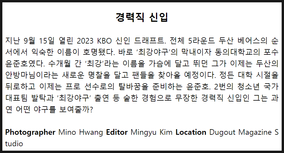 인터뷰이 : 두산 베어스 윤준호