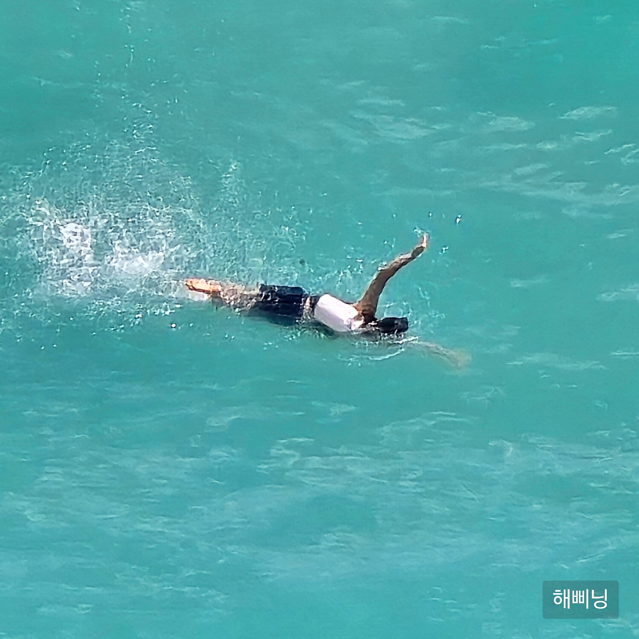 35층 숙소에소 100배 줌으로 혼자 수영하는 남편 찾기