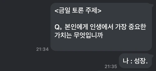G : 제일 중요한 가치? 난 아직 정하진 못했는데... 내적으로 외적으로 모두 안정되는 거? 내면의 단단함? 그런 게 중요한 것 같아. 저번에 감정이 소용돌이 칠 때 너무 힘들었던 경험이 있어서 ㅋㅋㅋ