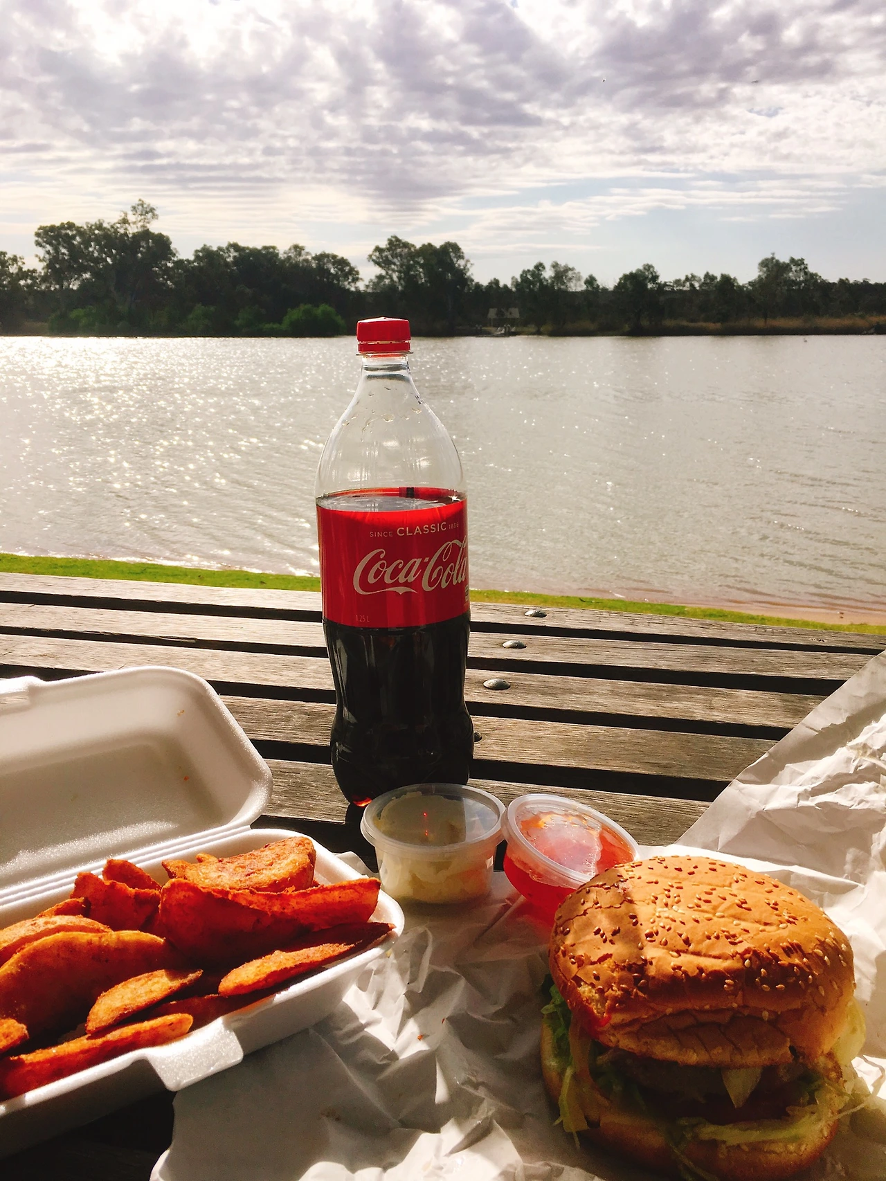 본의 아니게 체력 단련을 한 덕분에 우리의 점심이 너무나도 맛있게 느껴졌다. 이래서 땀 흘리고 난 뒤의 식사는 꿀맛이던가. 테이크 아웃한 버거를 스완 리치 강가에서 먹었다. 강을 바라보고 나란히 앉아 맛있는 버거에 흥분했다가 눈앞에 펼쳐진 절경에 대화가 잠시 멈췄을 때 이게 진짜 휴가라고 생각했다.