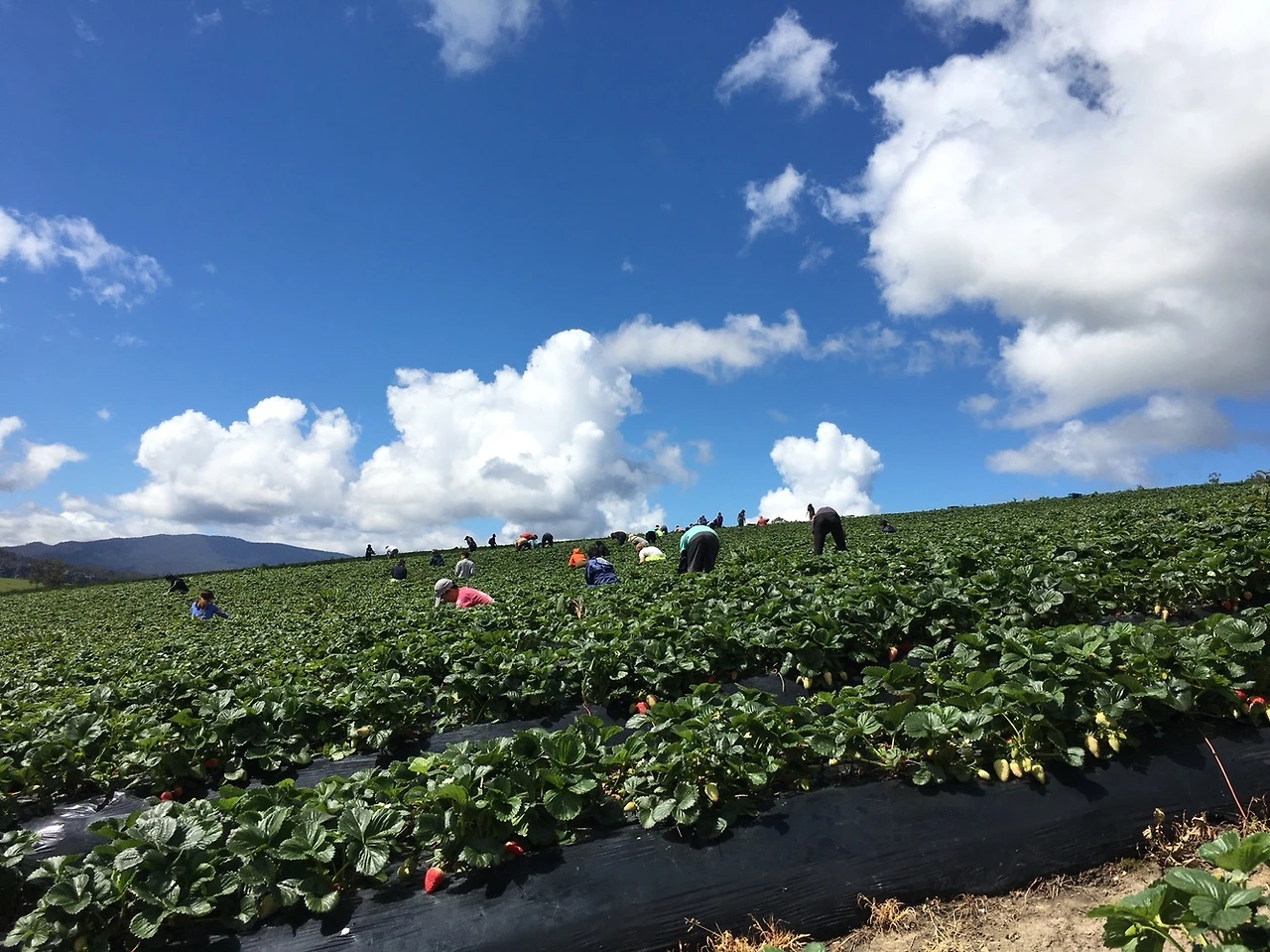 날씨가 너무 맑았다. 놀러 가는 사람에게는 최적의 날씨지만 딸기 픽커에게는 노동의 강도만큼이나 견디기 힘든 더위였다. 딸기밭의 규모는 엄청났다. 끝이 보이지 않는 딸기밭이 4개는 된단다. 딸기를 따서 초록색 통에 담으면 무게에 따라 급여를 주는데 1kg당 1달러. 10달러 아니고 단돈 1달러. 그러니깐 한화로 구백 원도 안 되는 가격. 40분 동안 통 하나를 죽을 둥 살 둥으로 다 채우면 총 5kg이고 약 사천 오백 원 정도를 벌 수 있다. 게다가 어찌나 잔소리가 심한지, 통을 끌고 다녀도 안되고 한 손에 딸기 여러 개씩 따지 말라고 하고 뭐도 안 되고 뭐도 안 되고. 누가 보면 통 하나에 50달러 주는 줄. 본인이 원하는 만큼 수확량을 채우면 되는 줄 알았는데 잠깐 5분도 쉬어도 안 된단다. 그럼 일수 안 채워준단다. 이거 갑질 아닌가? 이거 해도 너무 한 거 아니오. 아쉬운 쪽은 우리여서 할 말은 없었다.