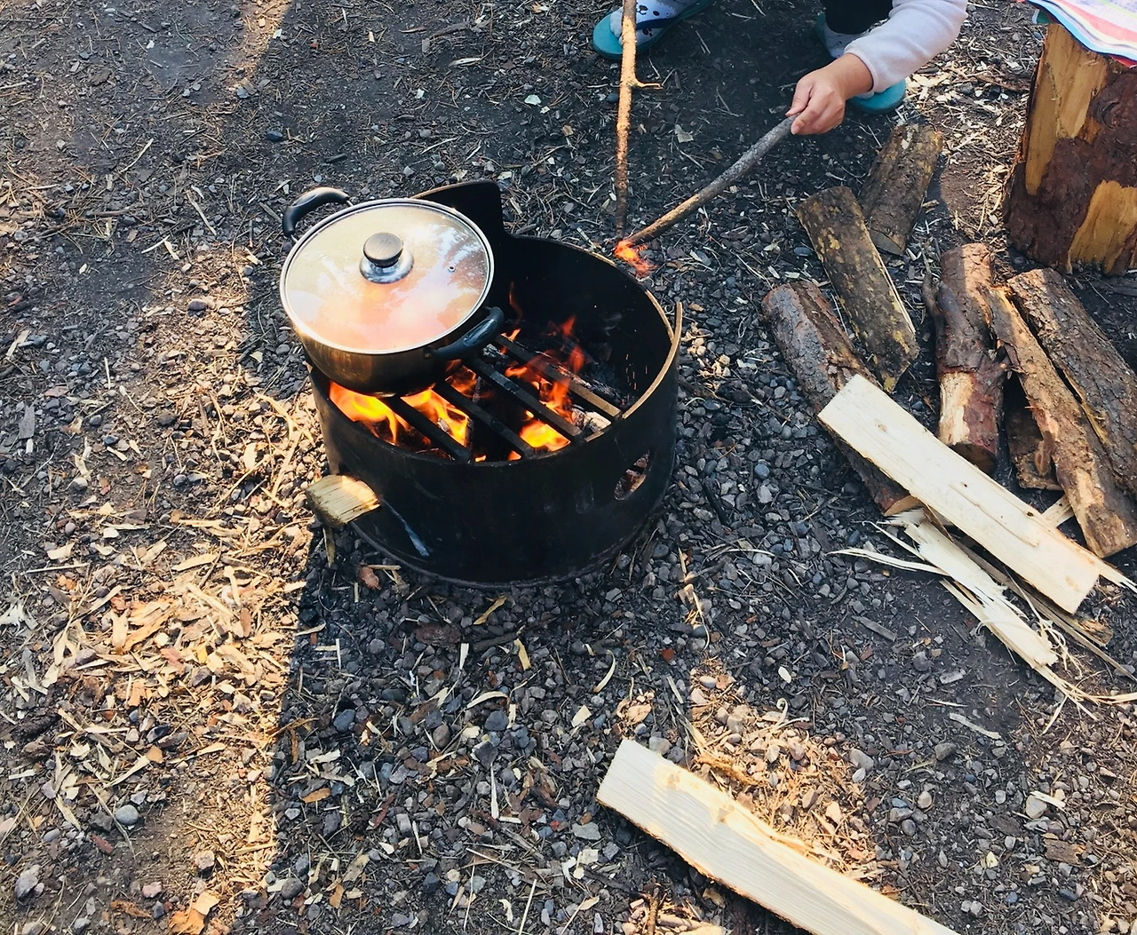 캠핑장 안에 공용 주방이 있을 줄 알았다. 오산이고 착각이고 망상이었네. 장작을 피워야 했다. 돈을 지불하고 잘라진 나무 장작을 필요한 만큼 챙겼다. 나뭇가지와 잎사귀도 야무지게 챙겨 기세 등등하게 우리 데크로 돌아왔다. 그러나 도시 촌년들은 불 피우는 법을 당연히 몰랐다. 와이파이 하나 없는 곳에서 불 피우는 방법을 검색할 수도 없기에 TV에서 봤던 불 피우는 장면을 떠올리며 감으로 시작했다. 아무리 부채질해도 입김을 불어도 살아나지 않는 불씨. 관광 안내소에서 챙겨 온 무료 신문지를 뭉쳐서 넣으니 활활 타올랐다. 효자 역할을 톡톡히 했다. 가까스로 밥을 하고 보니, 옮겨놓을 그릇이 없었다. 밥을 옮겨야 그 냄비에 국을 끓일 수가 있는데 말이다. 시야에 보이는 쿠키 상자. 이가 없으면 잇몸으로 부딪친다고, 우리에겐 마지막 쿠키 그릇이 있소이다. 쿠키 그릇은 국립공원 여행 내내 우리의 소중한 밥그릇이 되었다.