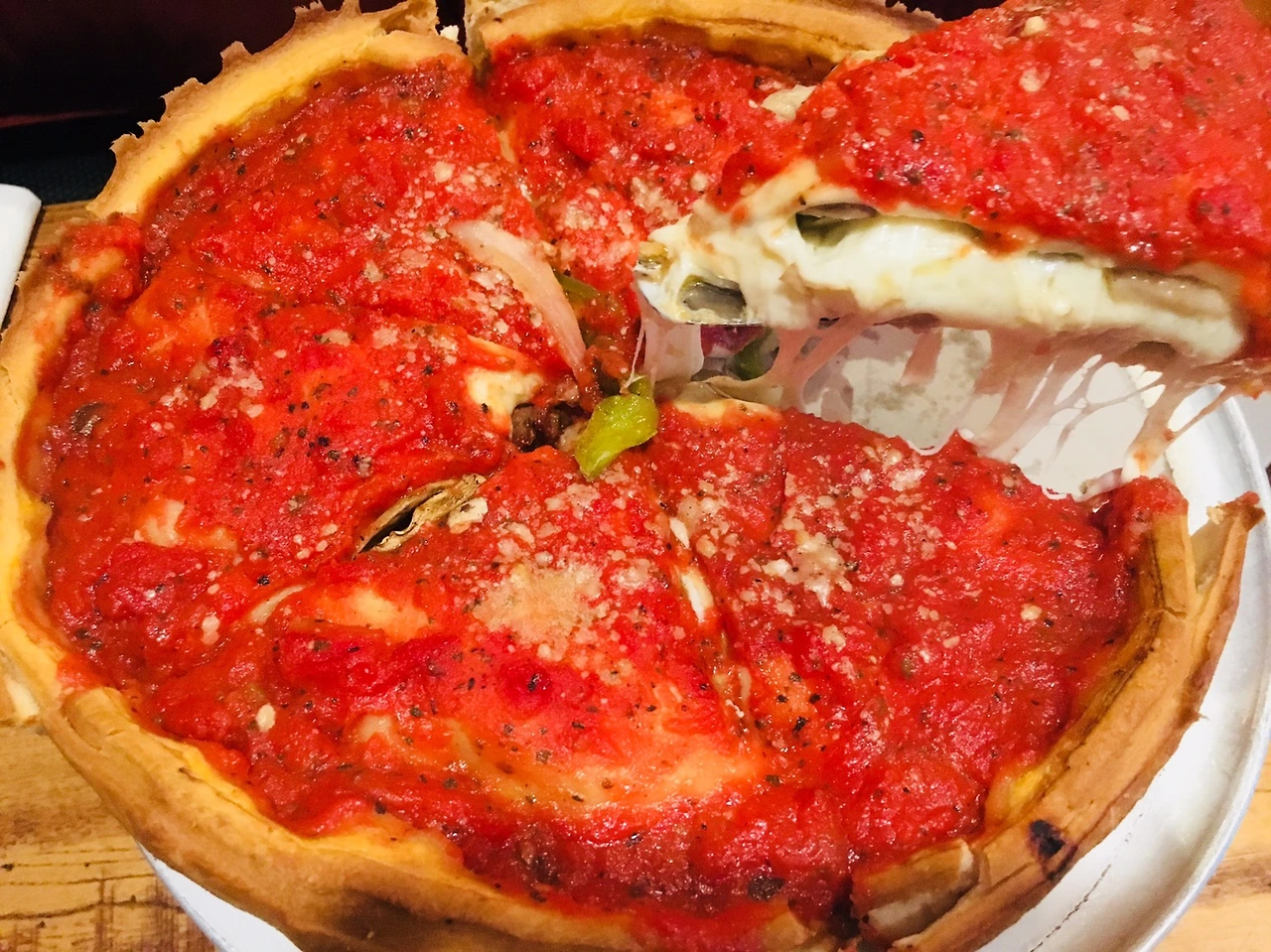 시카고 하면 생각나는 1순위는 시카고 피자였고, 우리의 첫끼는 치즈가 두툼하게 들어 있는 시카로 피자로 결정했다. 한국에서 선풍적인 인기가 있을 때, 맛있게 먹었던 시카고 피자를 현지에서 먹게 되다니. 한껏 들뜬 마음으로 걸음을 옮겼다. 밀가루 음식 킬러 루나 언니는 특히나 더 신나 있었다.