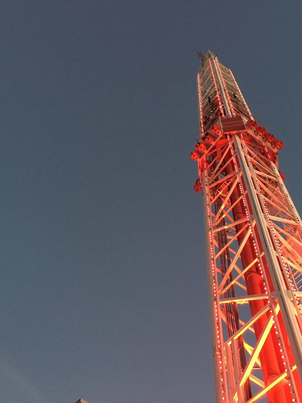 주인공은 마지막에 등장하는 법. 빅 샷은 전망대 위에 설치된 '자이로 드롭'이라 보면 되는데 가장 많이 탔고 처음부터 끝까지 스릴감 최고였다. 꼭대기에서 낙하하기 전에 뱅글뱅글 돌며 눈치싸움 시작할 때는 간이 조마조마했다. 빠른 속도로 내려가기 직전 그 찰나에 몸이 공중에 살짝 떠서 어깨 벨트에 내 어깨가 닿을 때의 그 짜릿함. 이건 좀 제대로 된 스릴 라이더였다. 우리는 평일에 이용했고 놀이기구 이용 시에 5분 이상 기다려본 적이 없다. 생각보다 관광객이 많지 않았다. 빅 샷에서 내리자마자 다시 타기도 했다.